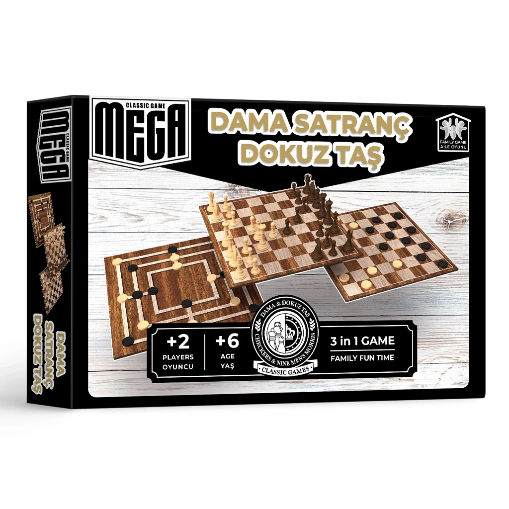 Her yaşa hitap eden bu oyunlar, çocukların mantıksal düşünme yeteneğini güçlendirirken, yetişkinler için de eğlenceli bir zihinsel egzersiz imkânı sunar. Setin içeriğinde dama, satranç ve 3 taş oyunlarının tüm taşları ve oyun tahtası yer alır.