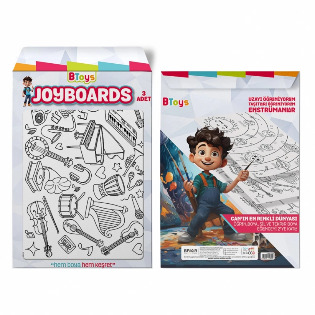 Müzik Aletlerim - EnjoyBoard Btoys Joyboards 3`lü Set ile çocuklarınızın eğlenceli ve öğretici bir şekilde vakit geçirmesini sağlayın! Bu set, ulaşım araçları, taşıtlar ve enstrümanlar temalı boyama panolarından oluşmaktadır. Her bir pano, çocukların hem öğrenmelerine hem de yaratıcılıklarını geliştirmelerine yardımcı olacak şekilde tasarlanmıştır. Öne Çıkan Özellikler: