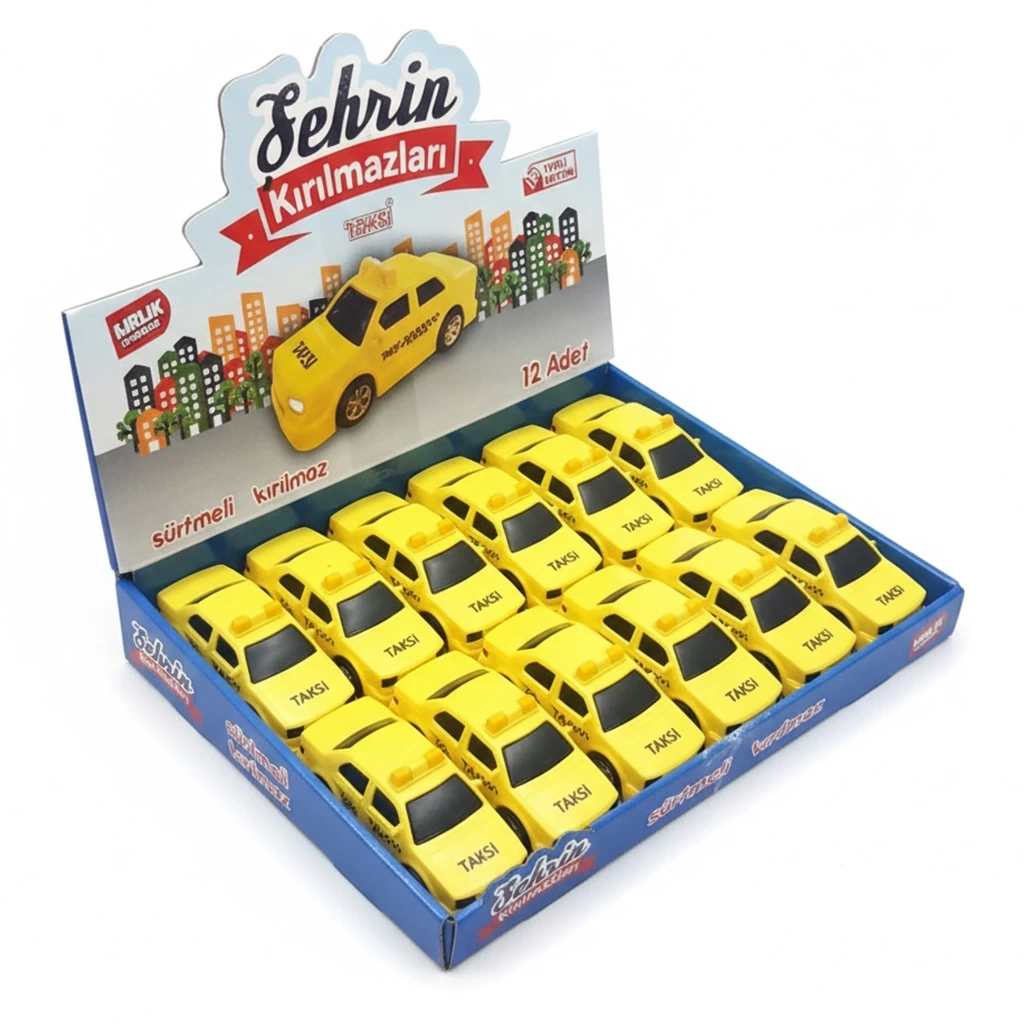 Şehrin Kırılmaz Sürtmeli Taksi, çocukların hayal gücünü geliştiren ve saatlerce eğlenceli oyun imkanı sunan mükemmel bir oyuncaktır. Dayanıklı yapısı sayesinde her türlü oyun ortamına uyum sağlar; düşmelere ve çarpmalara karşı dirençlidir. Gerçekçi detaylarıyla dikkat çeken bu sürtmeli taksi, çocukların sokaklarda hayal kurarak eğlenmelerine olanak tanır. Ayrıca, canlı renkleri ve çekici tasarımıyla, çocukların motor becerilerini ve el-göz koordinasyonunu geliştirmelerine yardımcı olur. Şehrin Kırılmaz Sürtmeli Taksi ile çocuklarınız, güvenli ve eğlenceli bir oyun deneyimi yaşayacak! * Kırılmaz * Sürtmeli Kutu İçerisinde 12 adet bulunmakta Kutu Boyutu : 33 x 26 x 5 cm Araba Boyutu : 12 cm Yaş 3+