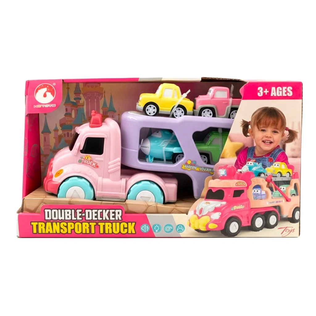 Küçük prensesinizin hayal gücünü pembe bulutlara taşıyacak olan KS TOYS Çift Katlı Taşıyıcı Kamyon ile tanışın! Pembe renkli bu sevimli tır, üzerindeki minik araçlarla birlikte eğlence dolu bir macera sunuyor.