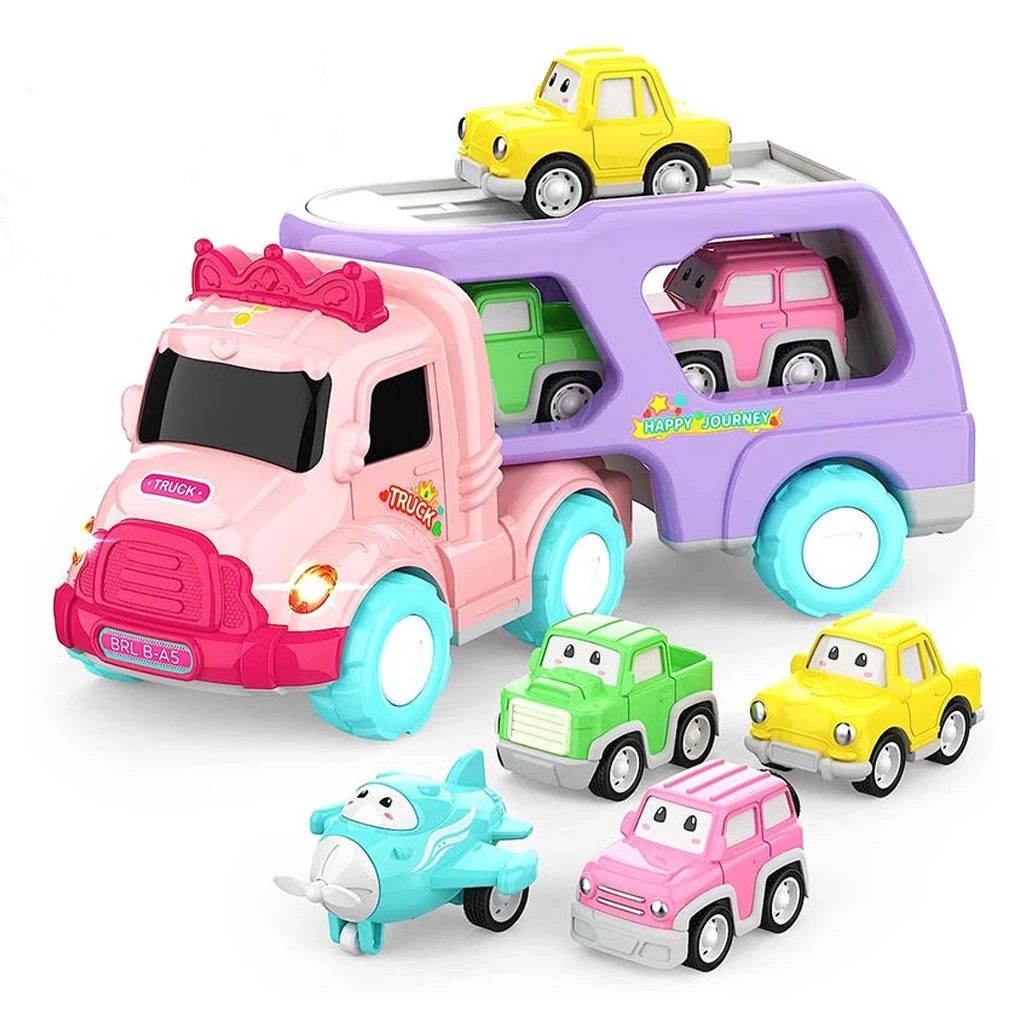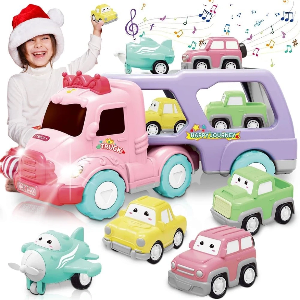 Tam Set: Ana taşıyıcı kamyonun yanı sıra, 3+ adet sevimli mini araç içerir (Sarı, Pembe, Mavi/Yeşil). Bu araçlar tırın üzerine yüklenmeye hazırdır!