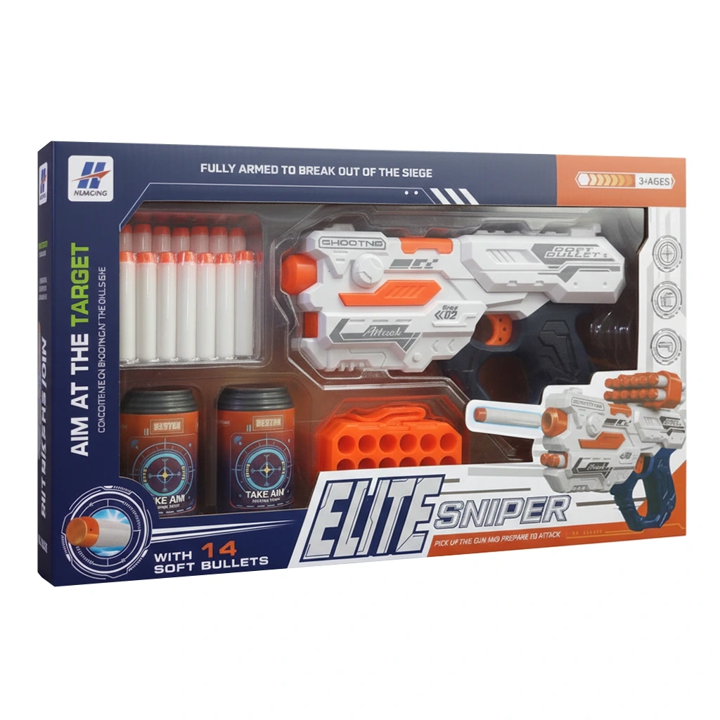 Kutulu Set: Hediye etmeye uygun, düzenli ve şık kutusunda sunulur. (Kutu içeriğinde yeterli miktarda sünger mermi bulunmaktadır.)