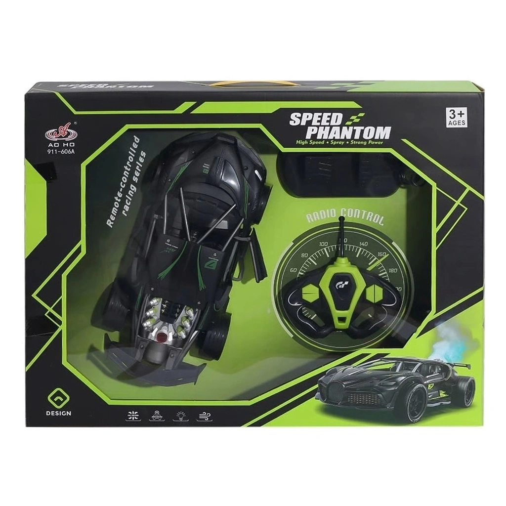 Hız tutkunları için tasarlanan AO HO Speed Phantom, sadece bir yarış arabası değil, aynı zamanda görsel bir şölen sunan teknolojik bir oyuncaktır. Siyah ve neon yeşil detaylarla bezeli agresif fütüristik tasarımı, gerçek egzoz dumanı hissi veren sprey özelliği ve yüksek hızıyla adrenalin dolu bir sürüş deneyimi vadeder.