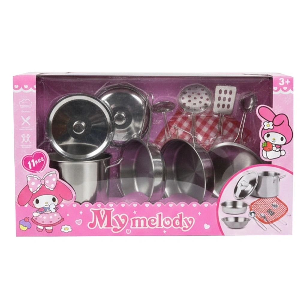 Evcilik oyunlarını bir üst seviyeye taşıyın! çocukların hayal dünyasını gerçeğe dönüştüren, yüksek kaliteli paslanmaz metalden üretilmiş kapsamlı bir settir. Dayanıklı yapısı ve sevimli My Melody temalı tasarımıyla bu set, miniklerin mutfaktaki yeteneklerini sergilemeleri için gereken tüm temel ekipmanları şık bir kutuda sunar.