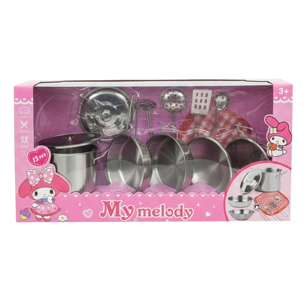 Evcilik oyunlarını bir üst seviyeye taşıyın! çocukların hayal dünyasını gerçeğe dönüştüren, yüksek kaliteli paslanmaz metalden üretilmiş kapsamlı bir settir. Dayanıklı yapısı ve sevimli My Melody temalı tasarımıyla bu set, miniklerin mutfaktaki yeteneklerini sergilemeleri için gereken tüm temel ekipmanları şık bir kutuda sunar.