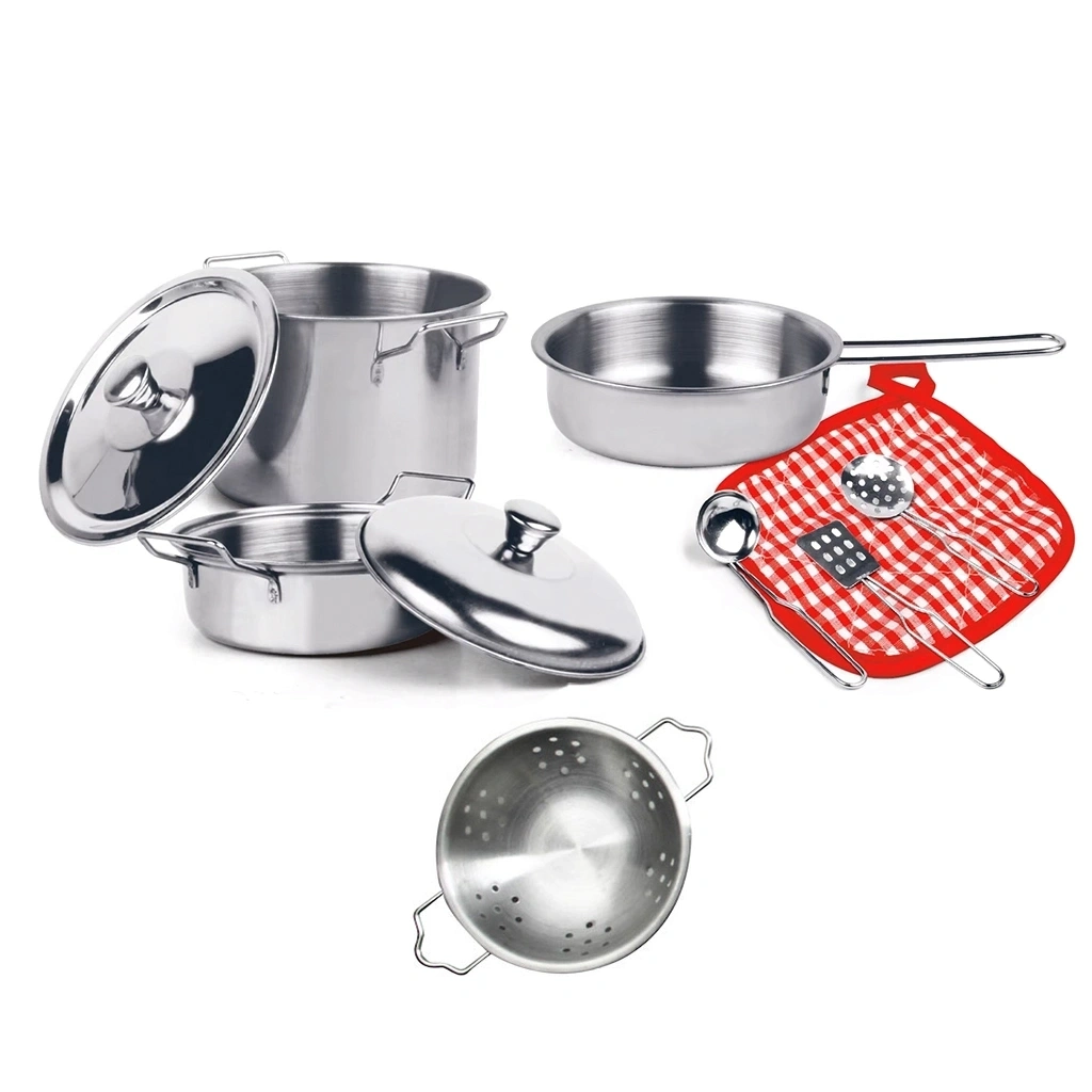 Dayanıklı Paslanmaz Metal: Plastik oyuncakların aksine, gerçek mutfak gereçleri hissi veren uzun ömürlü ve parlak metal materyal.