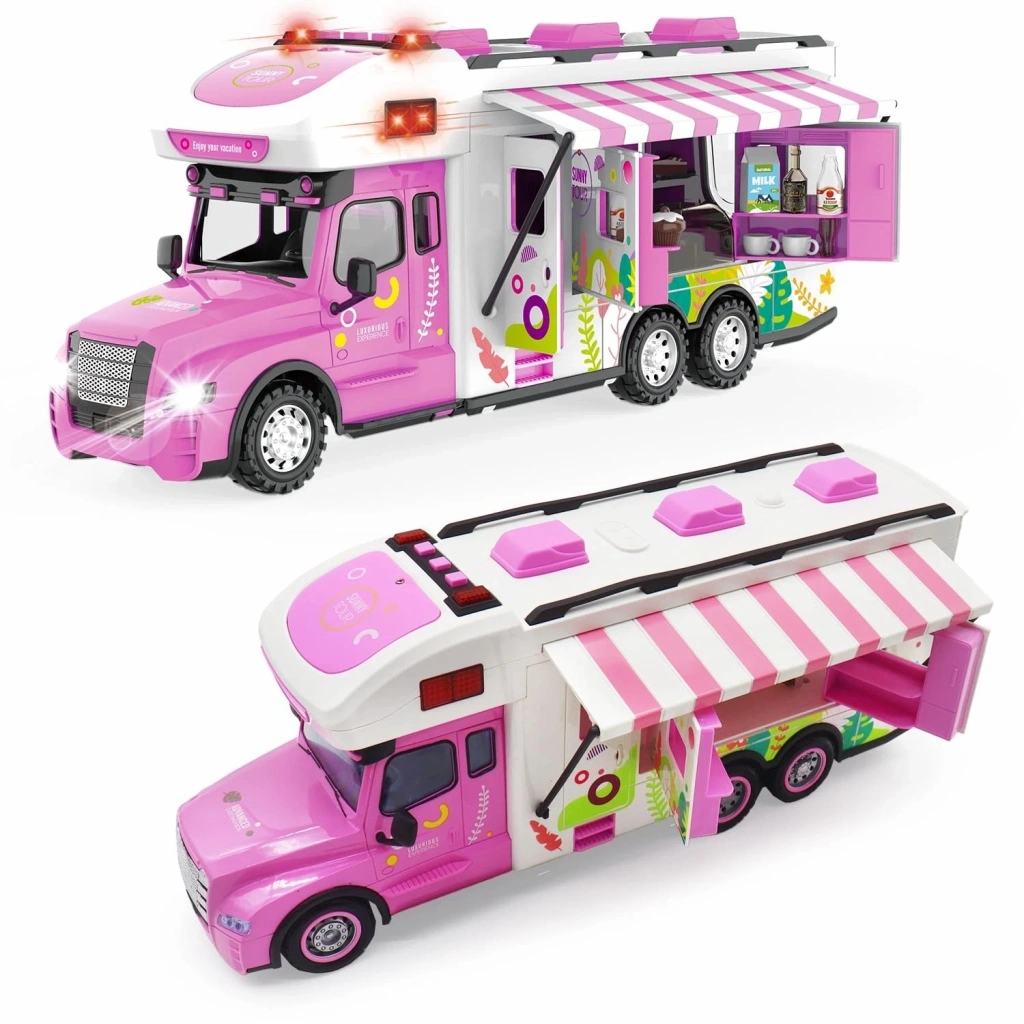 Minik gezginler için yolculuk vakti! Recreational Fun Vehicle, klasik oyuncak arabaların ötesine geçerek çocuklara bir karavan tatili simülasyonu sunuyor. Şık pembe ve beyaz tasarımı, renkli grafikleri ve uzaktan kumanda özelliğiyle bu karavan, hayali seyahatlerin en eğlenceli eşlikçisi olacak.
