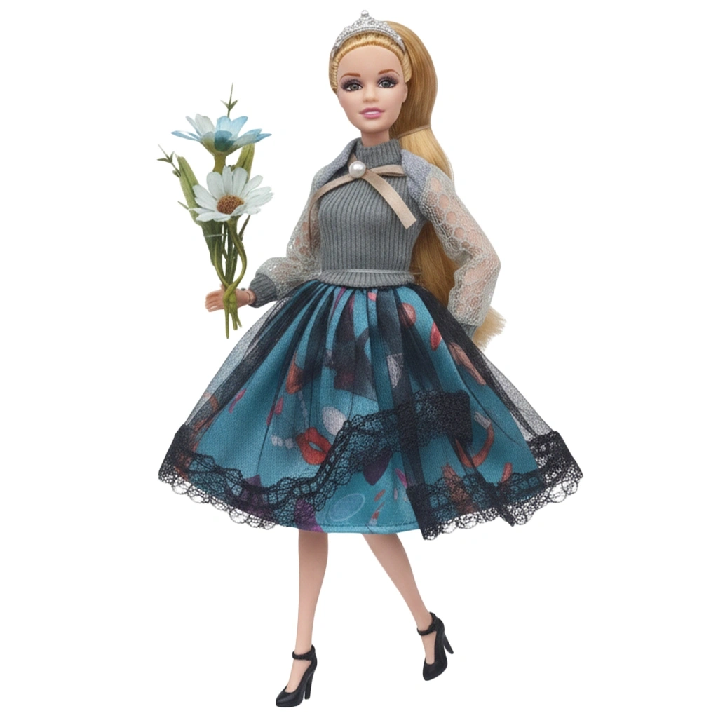Moda dünyasına modern ve zarif bir giriş yapın! Emily Collection Doll, "Modern and elegant in fashion" mottosuyla, stil sahibi olmayı seven çocuklar için özel olarak tasarlandı. Gri balıkçı yaka bluzu, dantel detaylı kolları ve ikonik desenlerle süslü eteğiyle bu bebek, oyun saatlerine yüksek moda anlayışını taşıyor.