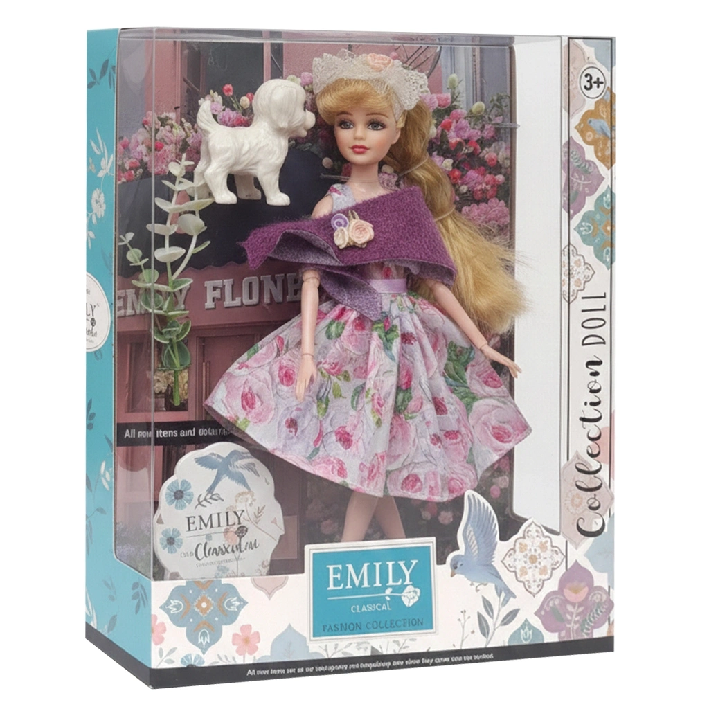 Klasik moda anlayışı, baharın taze enerjisiyle buluştu! Emily Classical Fashion Collection, pembe güllerle bezeli uçuş uçuş elbisesi ve omzundaki asil mor peleriniyle zarafeti yeniden tanımlıyor. "Emily Flower Shop" temalı özel kutu tasarımı ve yanındaki minik beyaz dostuyla bu set, çocuklara masalsı bir dünyanın kapılarını aralıyor.
