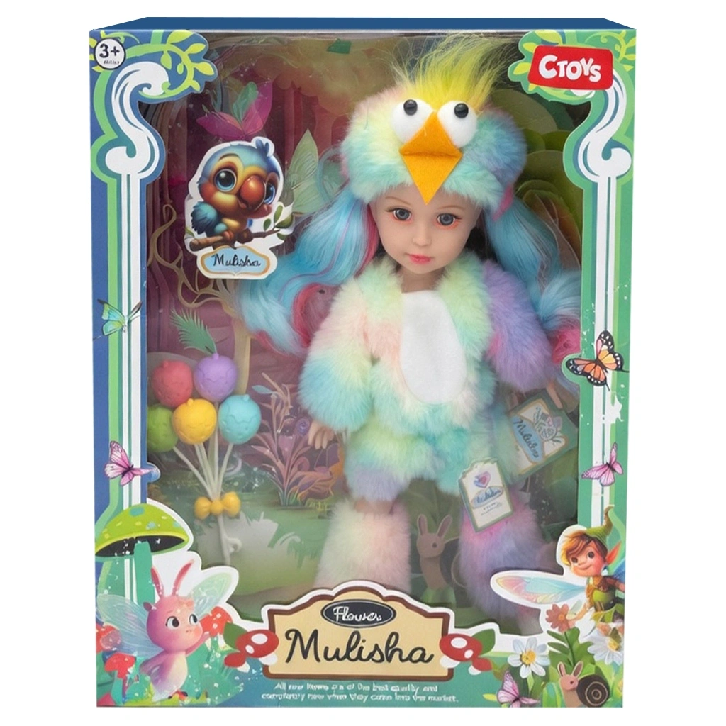 Doğanın en renkli dostuyla tanışmaya hazır mısınız? CTOYS Mulisha, egzotik bir papağan konseptini şık bir moda bebeği ile buluşturuyor. Bebeğin üzerindeki gökkuşağı renkli peluş papağan tulumu, turuncu gagalı ve büyük gözlü şapka detayıyla hem çok sevimli hem de benzersiz bir görünüm sunuyor. Mavi ve pembe tonlarındaki dalgalı saçlarıyla dikkat çeken bu bebek, çocukların hayal dünyasındaki en renkli maceraların başrolü olacak.