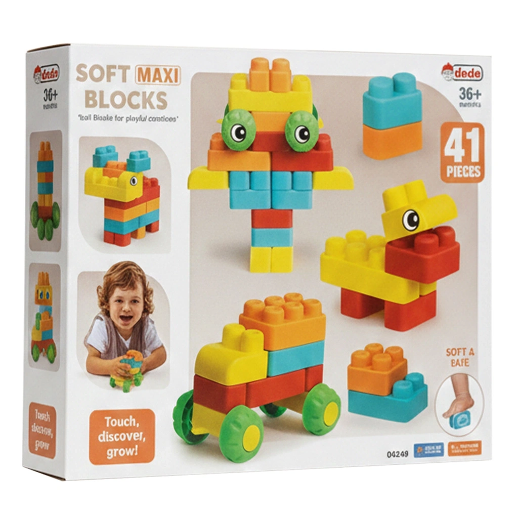 Küçük ellerin büyük hayaller kurması için tasarlanan Dede Yumuşak Maxi Bloklar, miniklerin yaratıcılığını en güvenli şekilde destekler. Klasik sert blokların aksine, esnek ve yumuşak yapısıyla öne çıkan bu 41 parçalık set, çocukların zarar görmeden özgürce inşa etmesine olanak tanır. Renkli dünyasıyla dikkat çeken bu bloklar, hem birer yapı taşı hem de duyusal gelişim aracıdır.