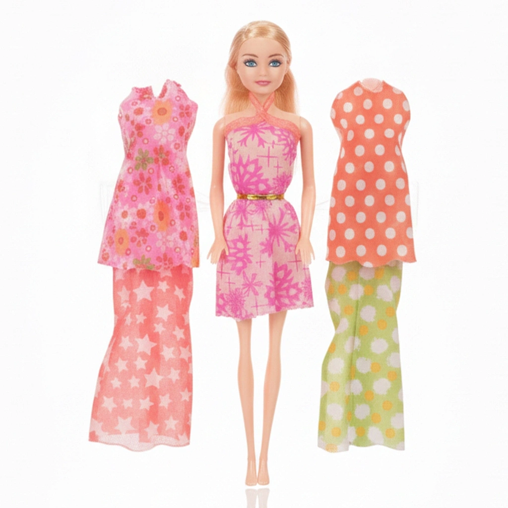 Son moda bir elbise giyen ve farklı şekillerde kombinleyebileceğin yedek elbiseli bebek