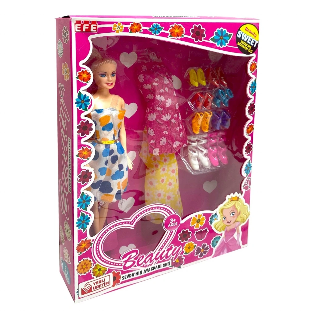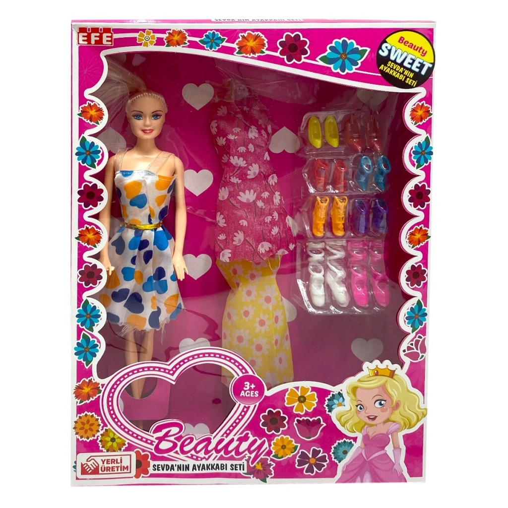 Minik stilistlerin dikkatine! EFE Sevda Yeni Ayakkabılı Bebek 214, göz alıcı kıyafeti ve özellikle çıkarılıp takılabilen yeni ayakkabı detayıyla çocuklarınızın moda oyunlarına taze bir soluk getiriyor. Bu bebekle çocuklar, stil yaratmanın ne kadar eğlenceli olduğunu keşfedecekler!Değiştirilebilir Ayakkabı Detayı: Setin ana cazibesi, bebeğin kolayca çıkarılıp tekrar giydirilebilen şık ayakkabılarıdır. Bu özellik, çocukların farklı kombinler yapmasını teşvik eder ve detaylara odaklanma becerisini güçlendirir.