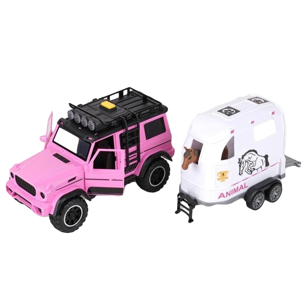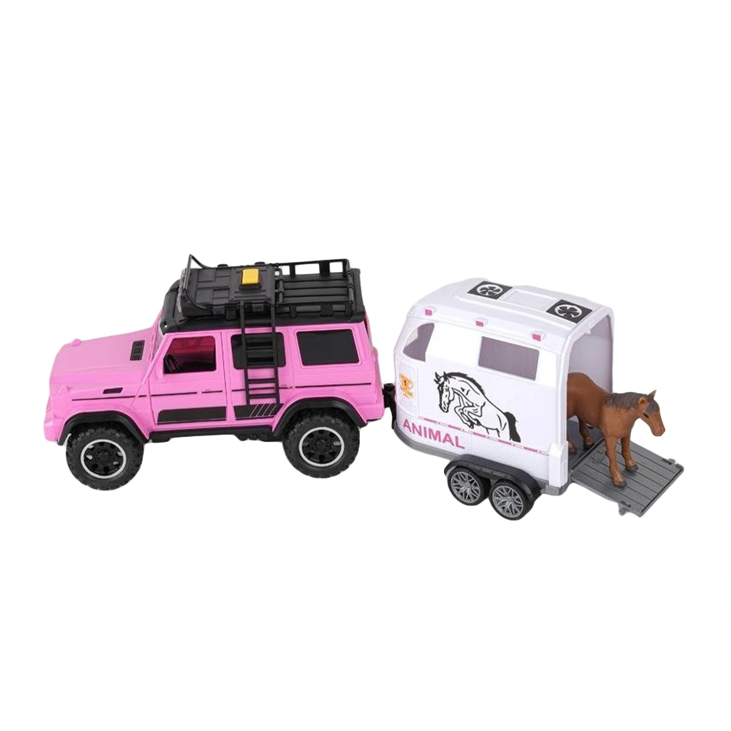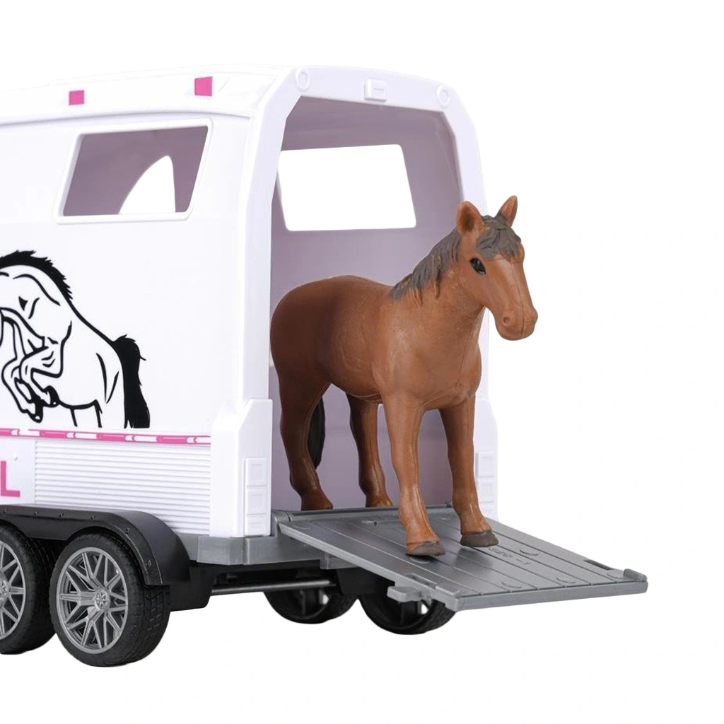 , çocukların hayvan sevgisini, bakım sorumluluğunu ve rol oyunlarını bir araya getiren eğlenceli ve geliştirici bir oyuncaktır. Detaylı tasarıma sahip çekici araç ve arkasında yer alan at taşıma karavanı, çocukların gerçek hayattan ilham alan taşıma ve bakım senaryoları oluşturmasına olanak tanır. Hareketli tekerlekleri ve sürtme sistemli yapısı sayesinde araç kolayca ilerlerken, ışık ve ses efektleri oyunu daha keyifli hâle getirir. Karavan bölümü, hayvan taşıma temasını destekleyen detaylarıyla rol oyunlarını zenginleştirir.