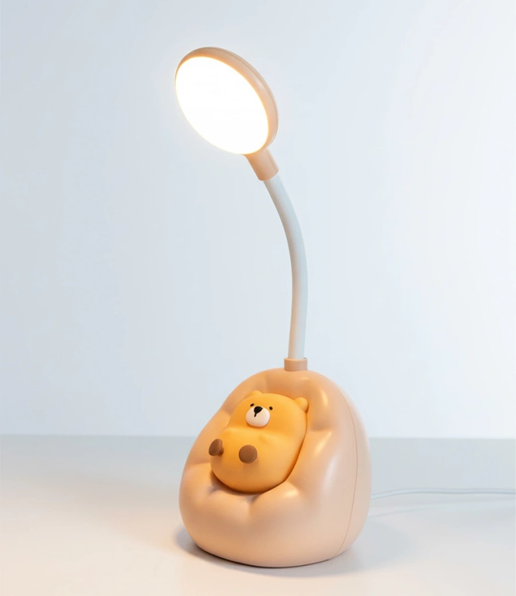 En sakin ve sevimli dostu Capybara, şimdi odanızın en şirin aydınlatması! KEMBAY CS333 Lamba, Capybara figürünün rahat bir pufa uzanmış eşsiz tasarımıyla, çalışma masanıza veya komodininize hem huzur hem de sıcak bir ışık katıyor.