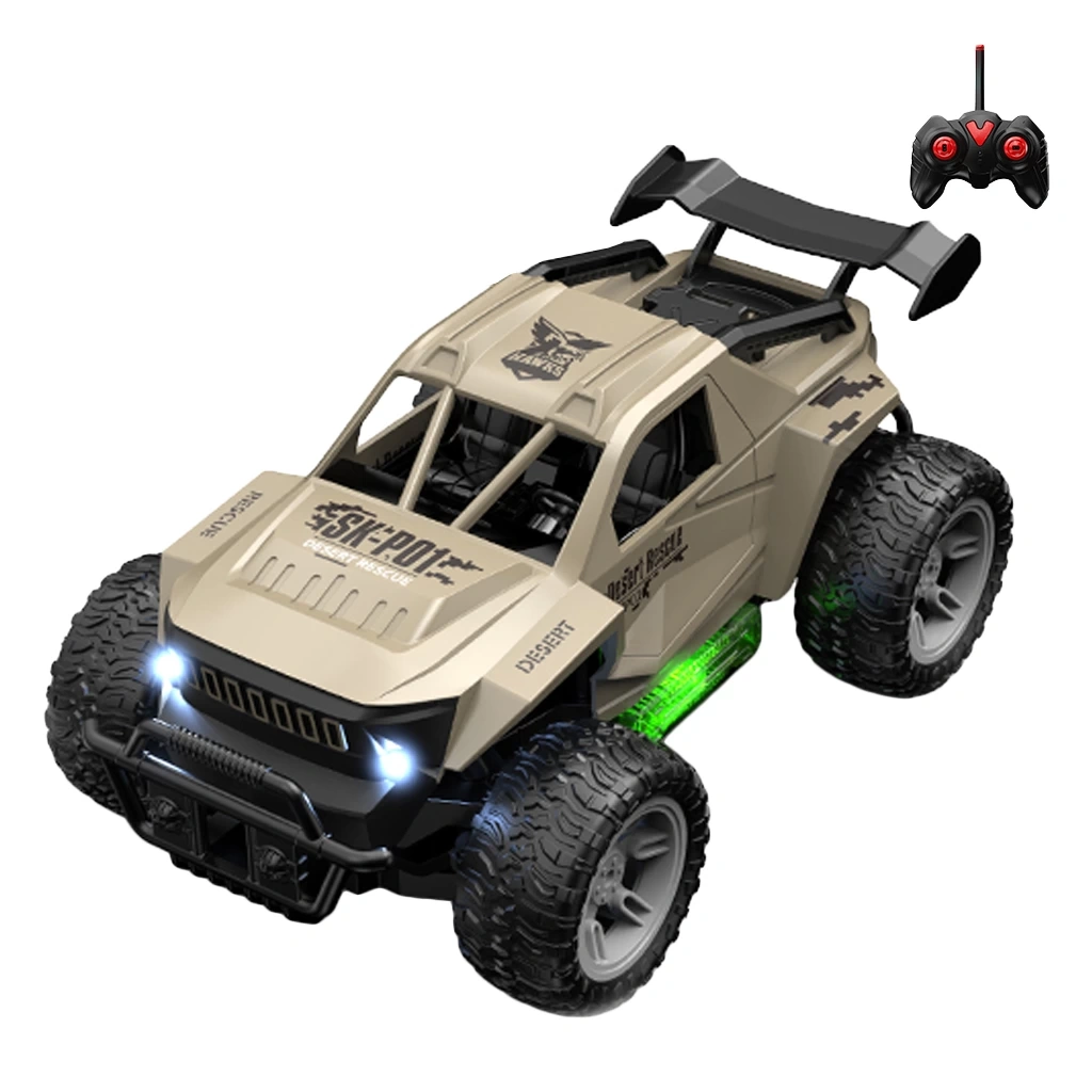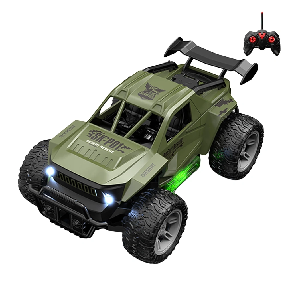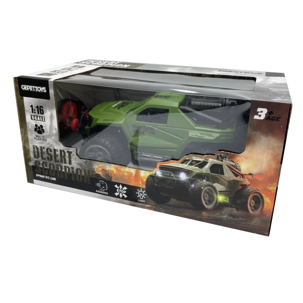KINDER 1:16 Ölçekli Askeri RC Araç, sadece uzaktan kumandalı bir oyuncak değil, tam bir operasyon deneyimidir! Askeri kamuflaj görünümü, büyük tekerlekleri ve en önemlisi gerçekçi duman ve ışık efektleri ile çocukların ve gençlerin en aksiyon dolu maceralarına eşlik etmeye hazır.