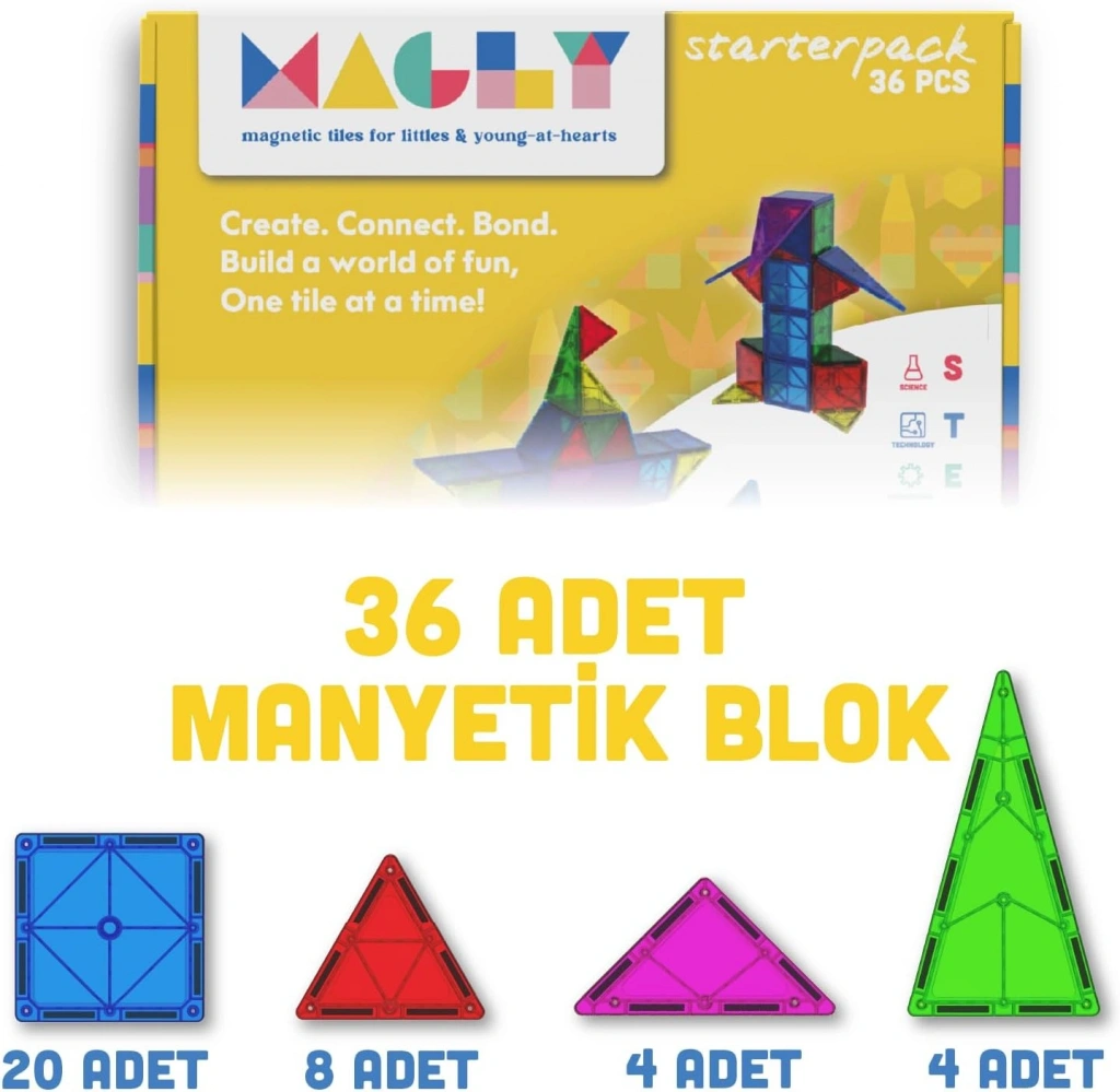 Eğlenceli anlarında miniklere eşlik edecek Manyetik Yapı Blokları 36 Parça ile artık her şey mümkün.