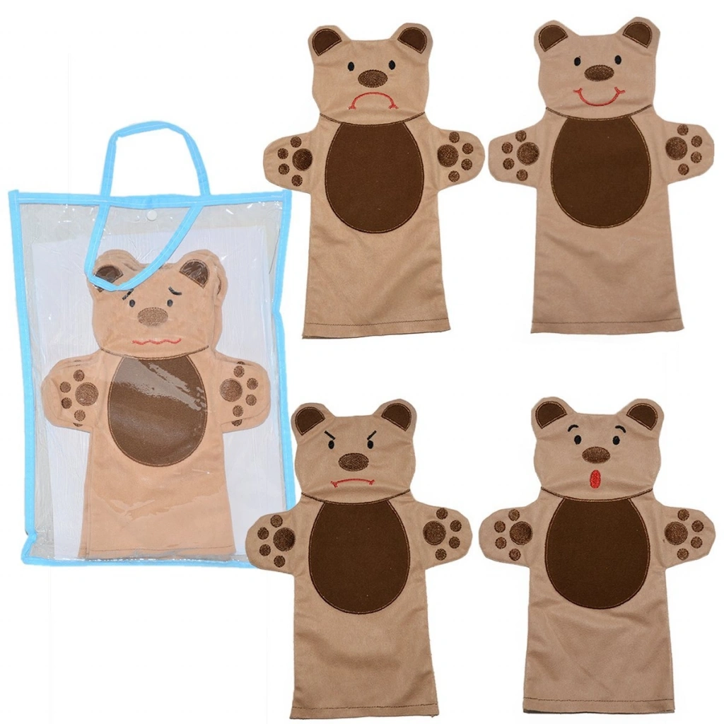 Yüz ifadeleri kukla seti çocuğun duygusal deneyim kazanmasına yardımcı olur. Yüz ifadeleri, çocukların sosyal etkileşimler sırasında aileleri ve akranlarıyla duygularını paylaşmalarını ve uygun durumlara uygun tepkiler vermelerini sağlayan önemli bir beceridir. Yüz ifadeleri kuklaları çocukların çevresi ile duygusal bağ kurmasına yardımcı olurken duygusal gelişimi destekler. Çocukların duyguları tanıyabilmelerine, duygularını doğru ifade etme becerileri geliştirmelerine olanak sağlar. Kuklalar, neşe (gülme),üzüntü (gözyaşları),öfke (kızgın bir yüz) gibi duygu deneyimlerini oyun yolu ile eğlenceli bir hale getirir.Ürünün içerisinde ayıcığın üzgün,sinirli,şaşkın,gülen,ağlayan ve endişeli yüz ifadelerinden oluşan, 6 adet el kuklası bulunmaktadır.Çocuk sağlığına uygun kumaş üzerine nakış tekniği ile üretilmiştir.