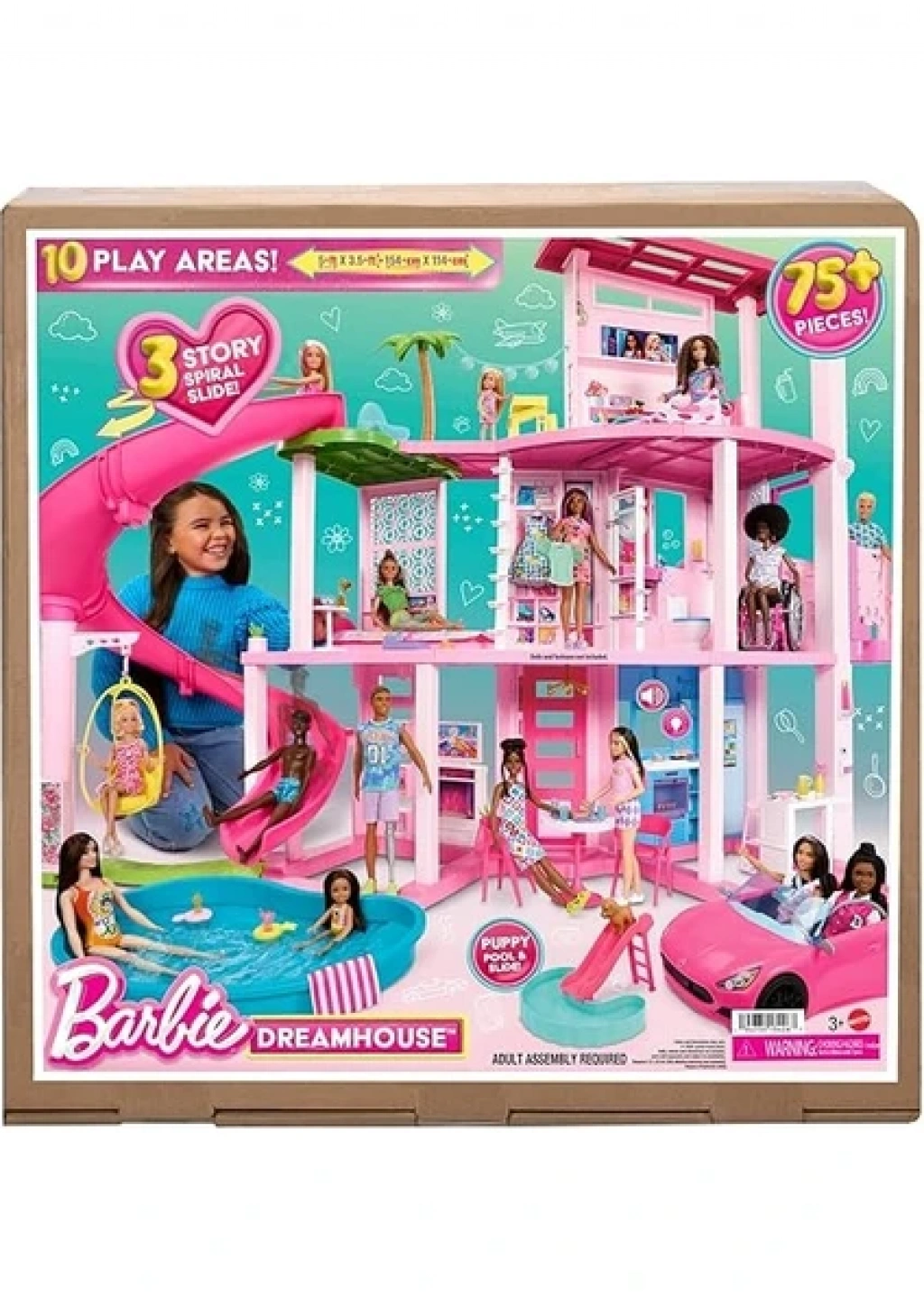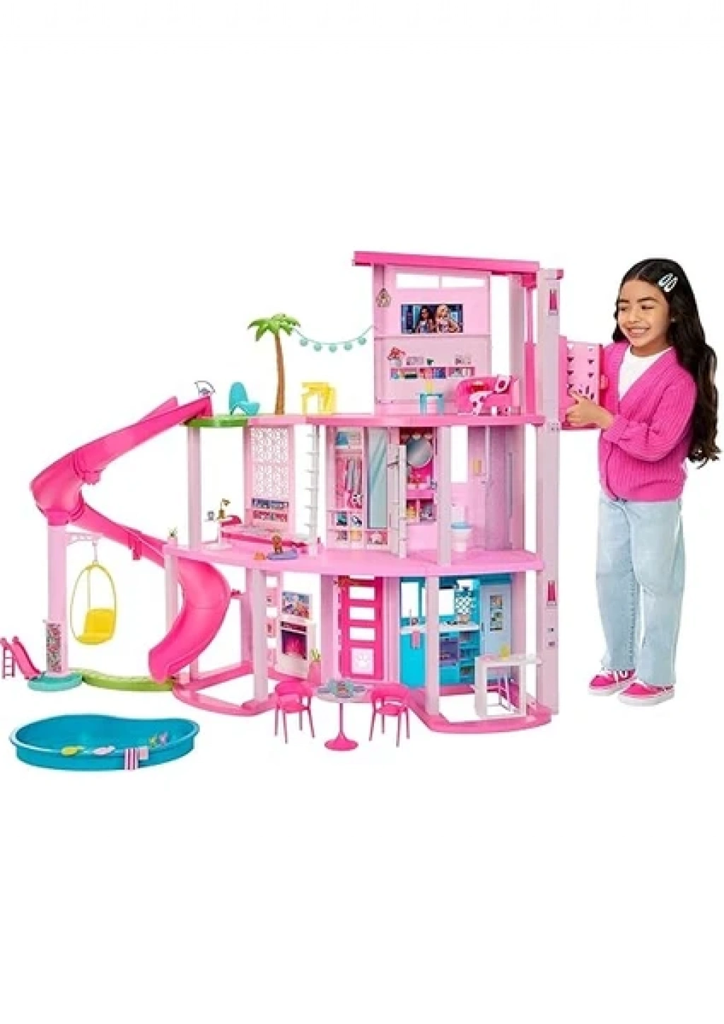 Çocuklar Barbie Rüya Evi ile hayatlarının en güzel havuz partisini verebilir! Bu lüks bebek evinde Barbie Rüya Evi serisindeki en uzun kaydırak bulunur. Üç katlı spiral tasarımlı kaydırakla güneşin altında sınırsız eğlenceye hazır olun! Bu ev; geniş ve ferah yerleşim planı, üç katı ve 10 adet açık ve kapalı yaşam alanı ile her köşesinde oyuna ilham veriyor. Ayrıca bu oyun setinde, her zamankinden daha fazla evcil hayvan dostu ayrıntı bulunur. Sette tüylü dostlarının Barbie bebekle birlikte oynamasına imkan sağlayan bir köpek kaydırağı ve havuz vardır. Tüm bunların yanı sıra Rüya Evi'nin üst katı dönüşüm geçirip dört bebeğin uyuyabileceği bir alan haline gelir. Eğlenceyi ikiye katlayan 75'ten fazla aksesuarı ve kişiselleştirilebilir alanıyla bu oyun seti, 3 yaş ve üzeri çocuklar için olağanüstü bir hediyedir. Kurulum gereklidir. Bebekler ürüne dahil değildir. Barbie Rüya Evi’ne hoş geldiniz! Buranın her köşesinde sınırsız eğlence var! Bu ikonik bebek evinin yenilenmiş versiyonu açık bir ev tasarımına, birinci sınıf özelliklere ve 75'ten fazla parçaya sahiptir. Barbie, evindeki muhteşem üç katlı spiral kaydırakla hayallerindeki havuz partisini verebilir. Barbie bebek ve arkadaşlarının kaydıraktan kayarak havuza girmesini izleyin! Bu bebek evi aynı zamanda gerçek bir evcil hayvan sarayıdır, hatta bir köpek figürü bile içerir! Tüylü dostlar evcil hayvanlara yönelik asansör, kaydırak, havuz, yatak, kapı ve ev ile harika zaman geçirecek. Çocuklar en başta ondan fazla oyun alanını keşfederek saatlerini geçirebilir: mutfak, oturma odası, yemek odası, yatak odası, banyo, dolap, ek oda, balkon, havuz ve şimdiye kadarki en büyük kaydırak. Evdeki dört bebeği alacak kadar alanla havuz partisi pijama partisine dönüşebilir. Oturma odasındaki konsol dönüşüm geçirerek yıldızlı fonu ve iki kişi için fazladan yatağıyla pijama partisi için en ideal yer haline gelir. Rüya gibi özellikler arasında mutfak ve banyodaki entegre ışıklar ve sesler, eğlenceli mobilyalar (yatak odasındaki ek çekyat dahil) ve palmiye ağacı olan üst kat balkonu bulunur. Hikaye anlatımını güçlendiren 75'ten fazla parça, tekerlekli sandalyeye uygun çalışan bir asansör, sevimli bir salıncak, muhteşem dolap ve daha fazlasıyla oyunlara ayrıntı katın. Barbie Rüya Evi™ oyun seti, 3 yaş ve üzeri çocuklara sınırsız sayıda hikayenin kapısını açar. Ürün ölçüsü: 114 x 70 x 157 cm Kutu ölçüsü: 76,2 x 21,5 x 76,2 cm Ağırlık: 11,980 kg