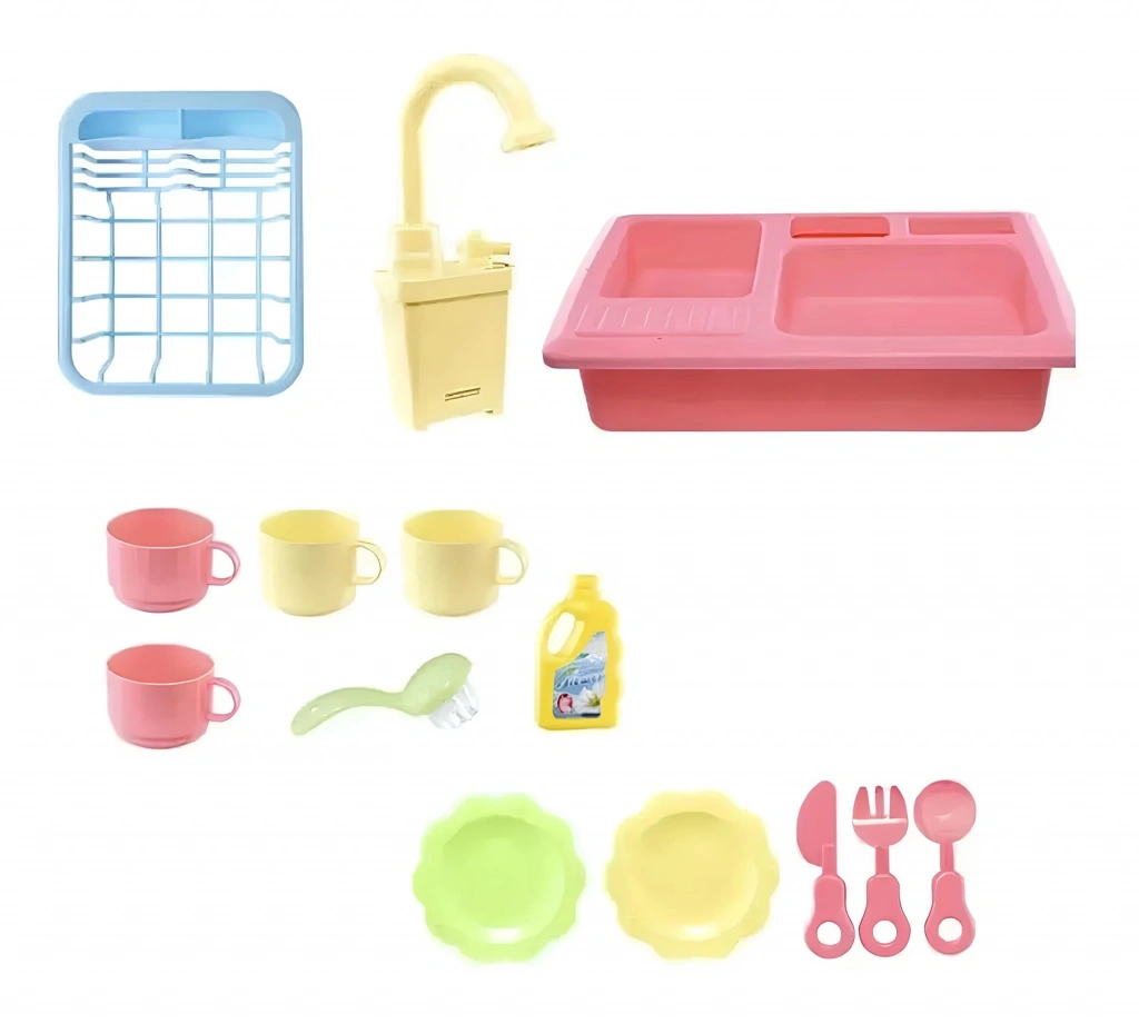 Çocuklar bulaşık yıkayarak, tencere doldurarak ve suyla oynayarak eğlenebilirler, bu da oyunu daha gerçekçi ve eğlenceli hale getirir. Çocukların farklı oyun yollarını keşfetmesine olanak tanıyan tabaklar, çatal bıçak takımı, bardaklar, bulaşık fırçası, bulaşıklık ve deterjan gibi çeşitli aksesuarlarla birlikte gelir.
