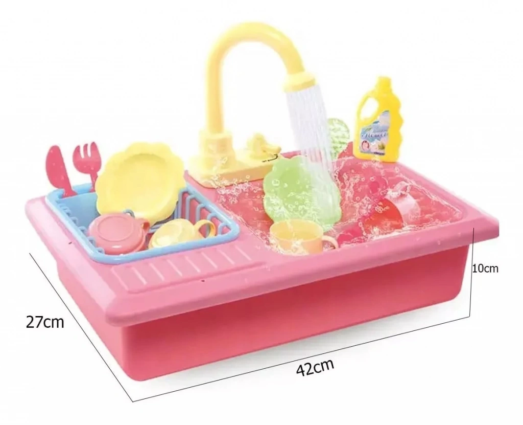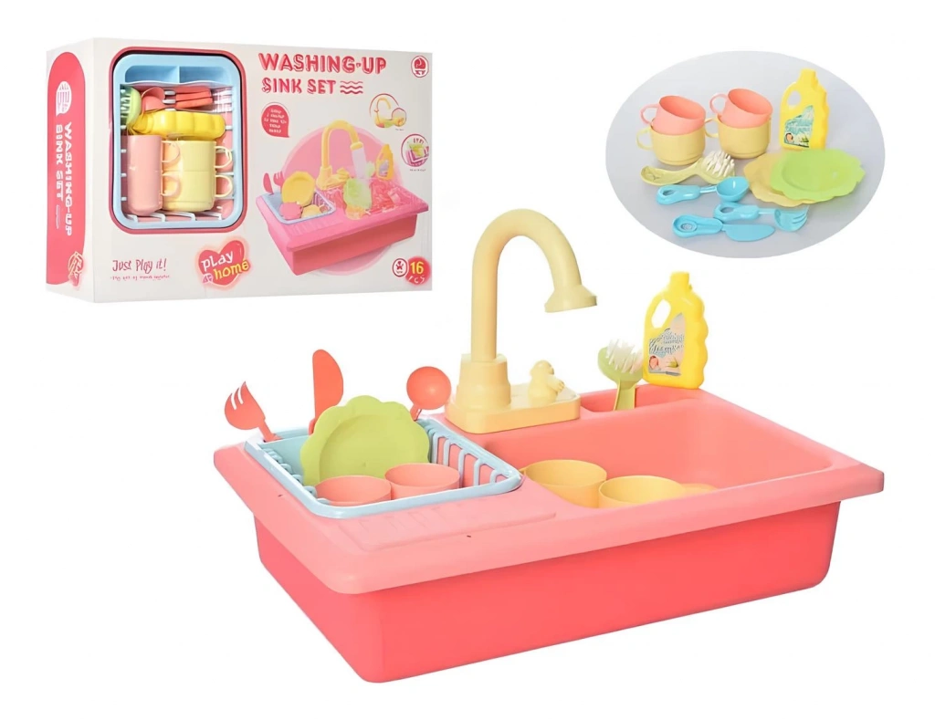 Gerçek bir lavabo gibi otomatik su devri daim sistemine sahiptir. Çocuklar bu oyuncak ile gerçekçi bir evcilik deneyiminin yanı sıra evdeki işlere yardımcı olmayı da öğrenecekler