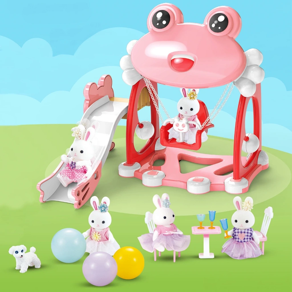 Kaydıraklı "Eğlence Parkı" tavşan oyun seti, hikaye oyunlarını seven çocuklar için en iyi hediye olacak.