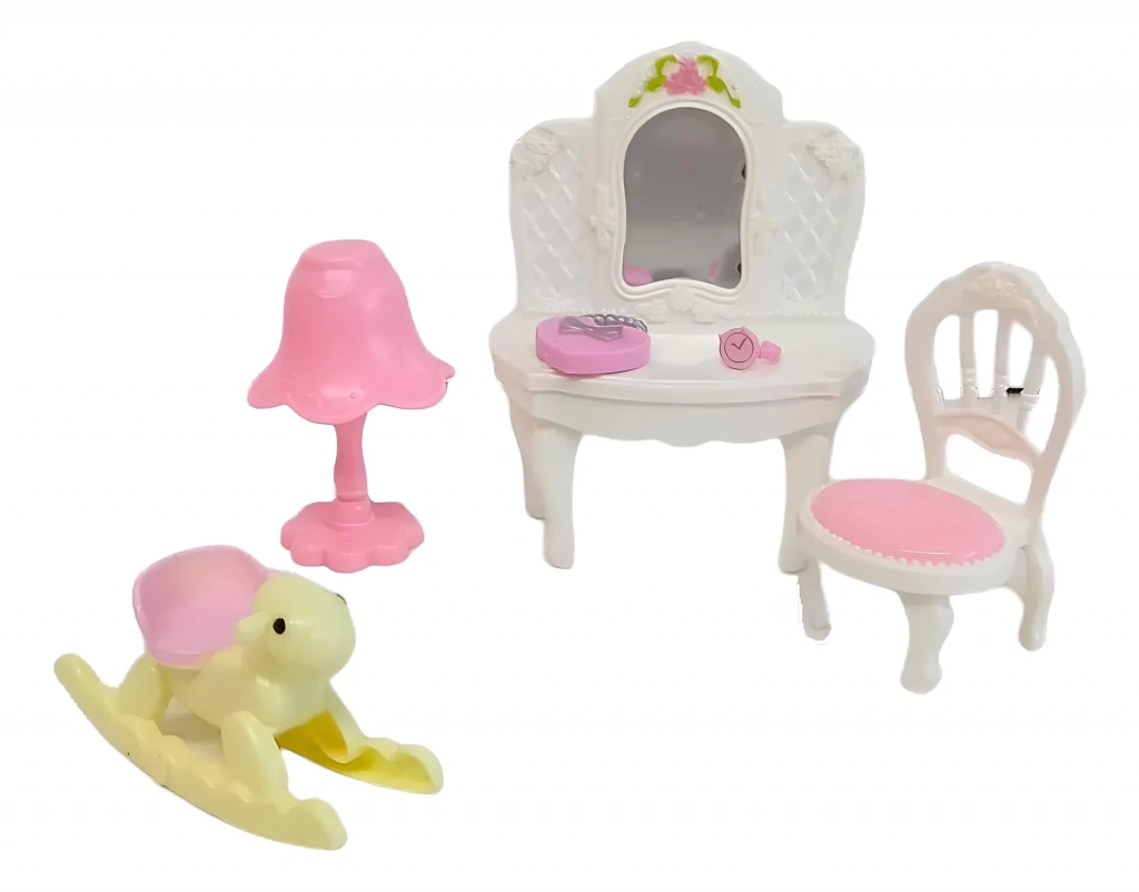 Bu büyüleyici set, giyimli tavşanların yanı sıra yatak, gardırop, aynalı şifonyer, lamba ve kaydırak gibi çeşitli ayrıntılı mobilyalar içerir.
