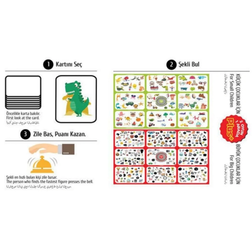 Oyun kartındaki şekil görüldükten sonra zeminde bulunan mukavva kağıtta şekli ilk bulan zile basar.