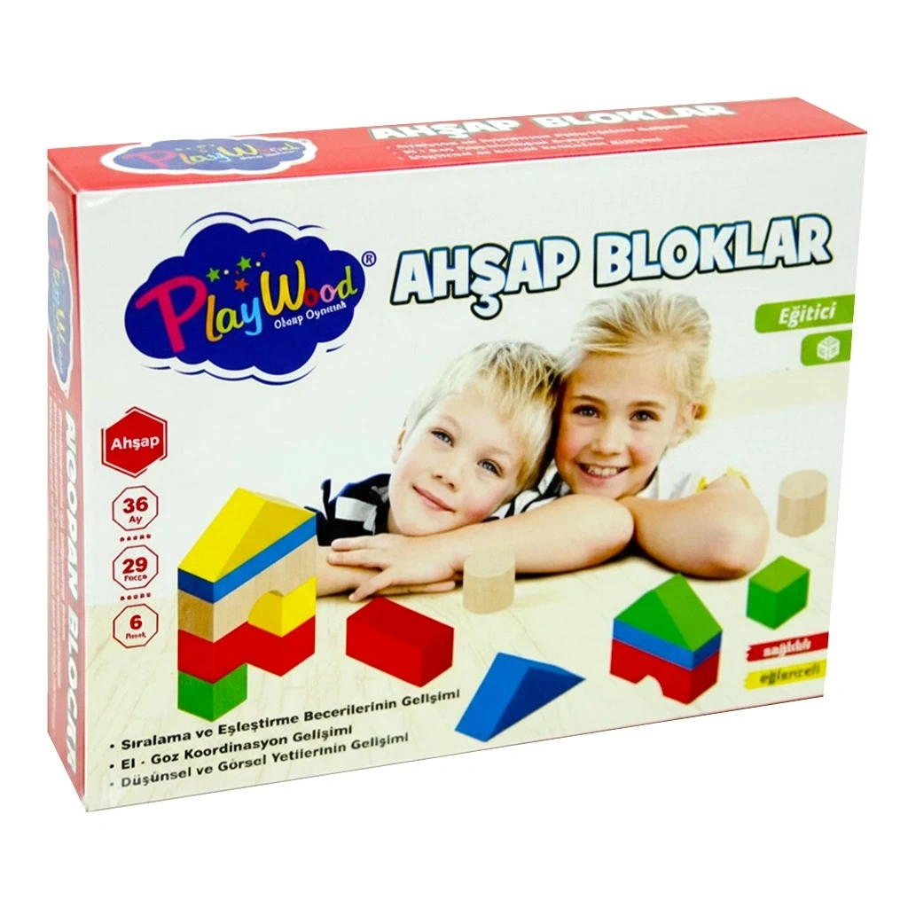 3 yaş ve üzeri çocuklar için uygundur.Geometrik şekillerden oluşan ahşap oyuncak. Playwood eğitici ahşap bloklar, çocuğunuz ince motor ve kaba motor gelişiminin yanı sıra zeka gelişiminede yardımcı olur. Zeka geliştiren oyuncaklar çocuğunuzun gelişim evresinde temel kavramları kolayca öğrenmesine yardımcı olan oyuncaklardır. Playwood eğitici el becerisini geliştiren oyuncaklar çocukların kas gelişimini, özgüven gelişimini ve el-göz koordinasyonunu geliştirir. Sıralama ve eşleştirme becerilerini ve düşünsel ve görsel yetilerinin de gelişmesin de yardımcı olur.
