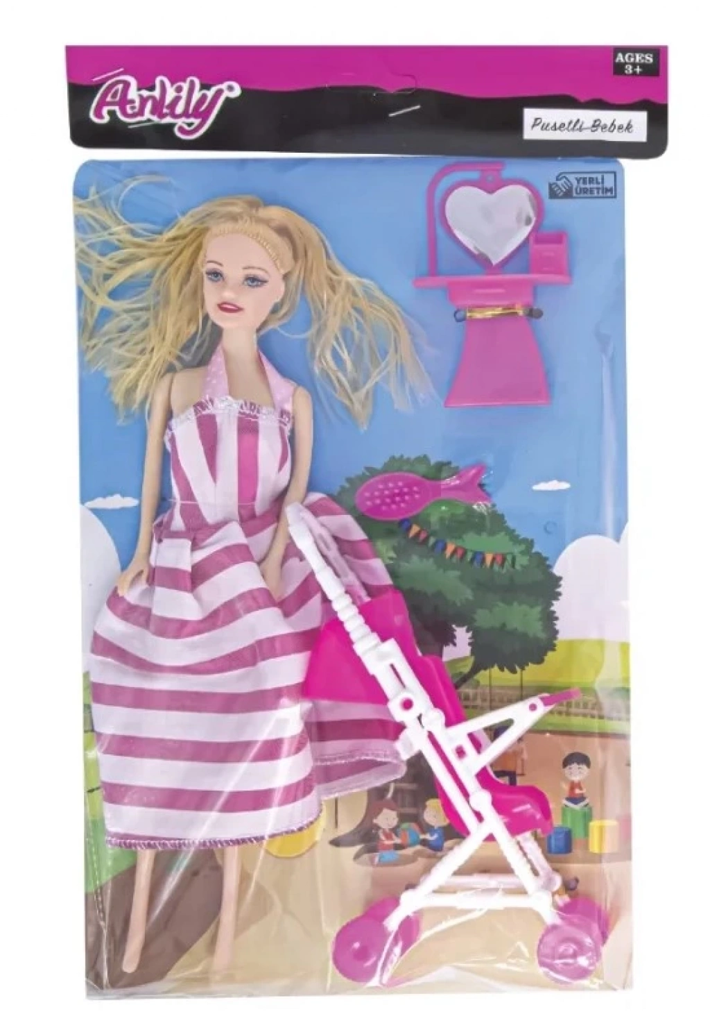 Oydaş Anlily Poşette Pusetli Bebek seti ile çocuklarınızın oyun dünyasına gerçekçilik ve eğlence katın!