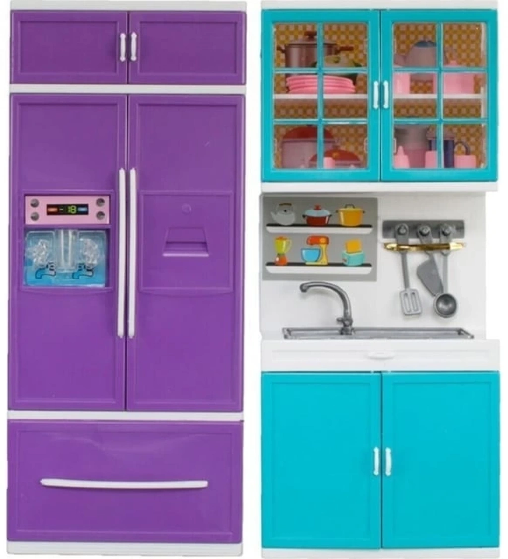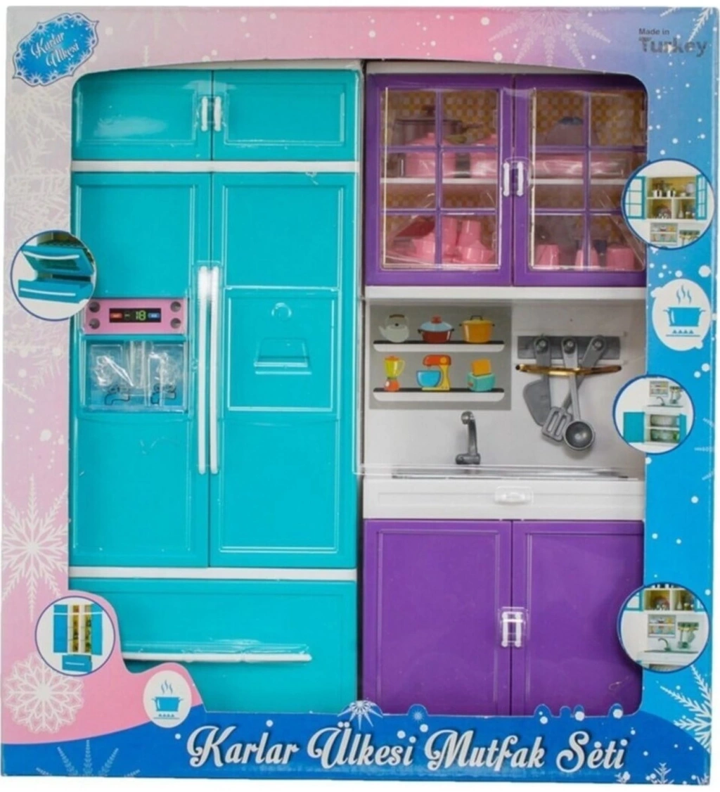 İki parçadan oluşan set, hem buzdolabı hem de lavabo olarak kullanılabilir, böylece çocuklar oyun sırasında farklı mutfak aktivitelerini keşfedebilirler