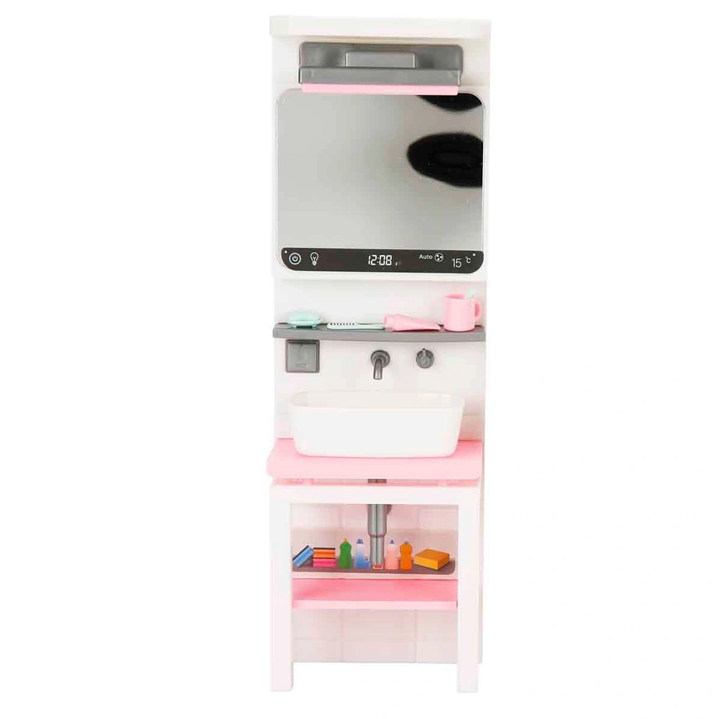 Gerçekçi lavabo ve ayna tasarımı ile minikler, hayali oyunlar oynayarak eğlenceli vakit geçirebilirler.
