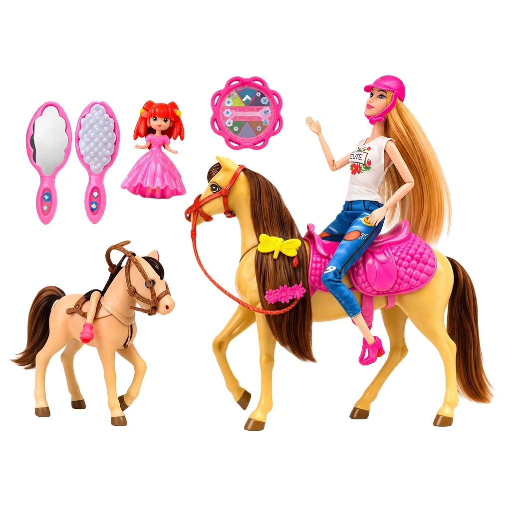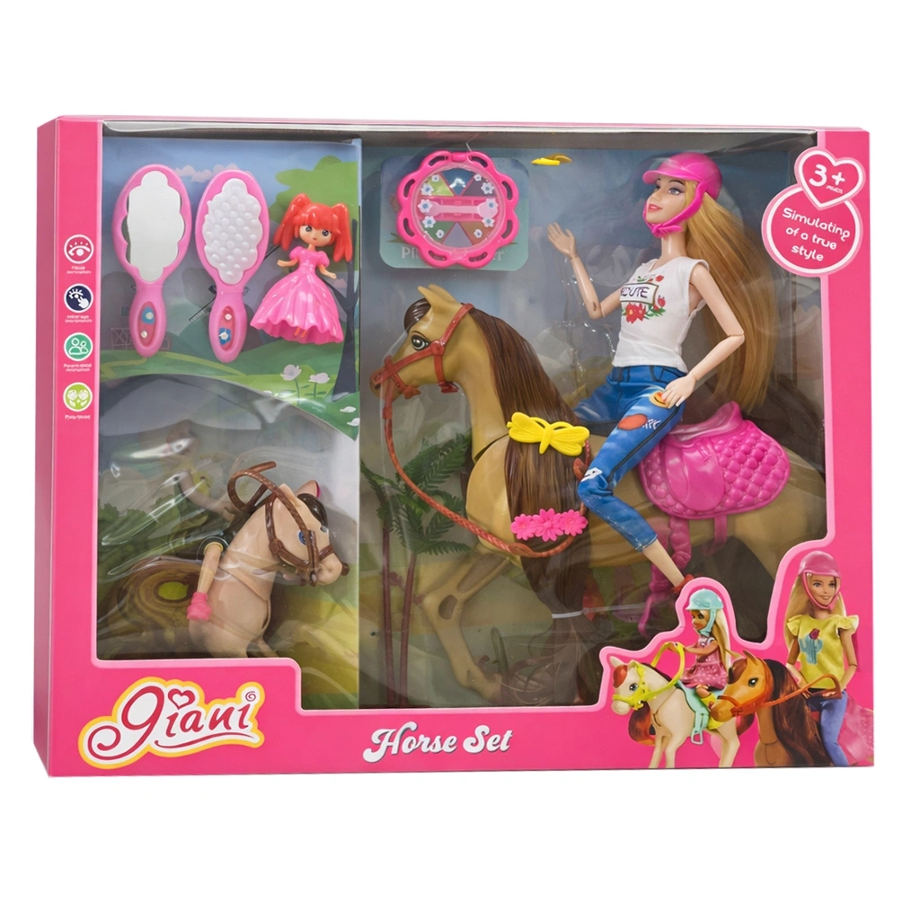 Doğada harika bir gün geçirmeye ne dersiniz? Prestij JN698-2, çocuklara hem bir anne-kız ilişkisini canlandırma hem de asil bir atla maceralara atılma fırsatı sunuyor. Setin yıldızı olan görkemli at, anne bebeğin üzerine binebileceği detaylı bir eyer takımına sahiptir. Küçük kız bebek ise annesinin yanında bu eğlenceli yolculuğa eşlik ederek oyun senaryolarını çok daha zengin ve gerçekçi kılar.
