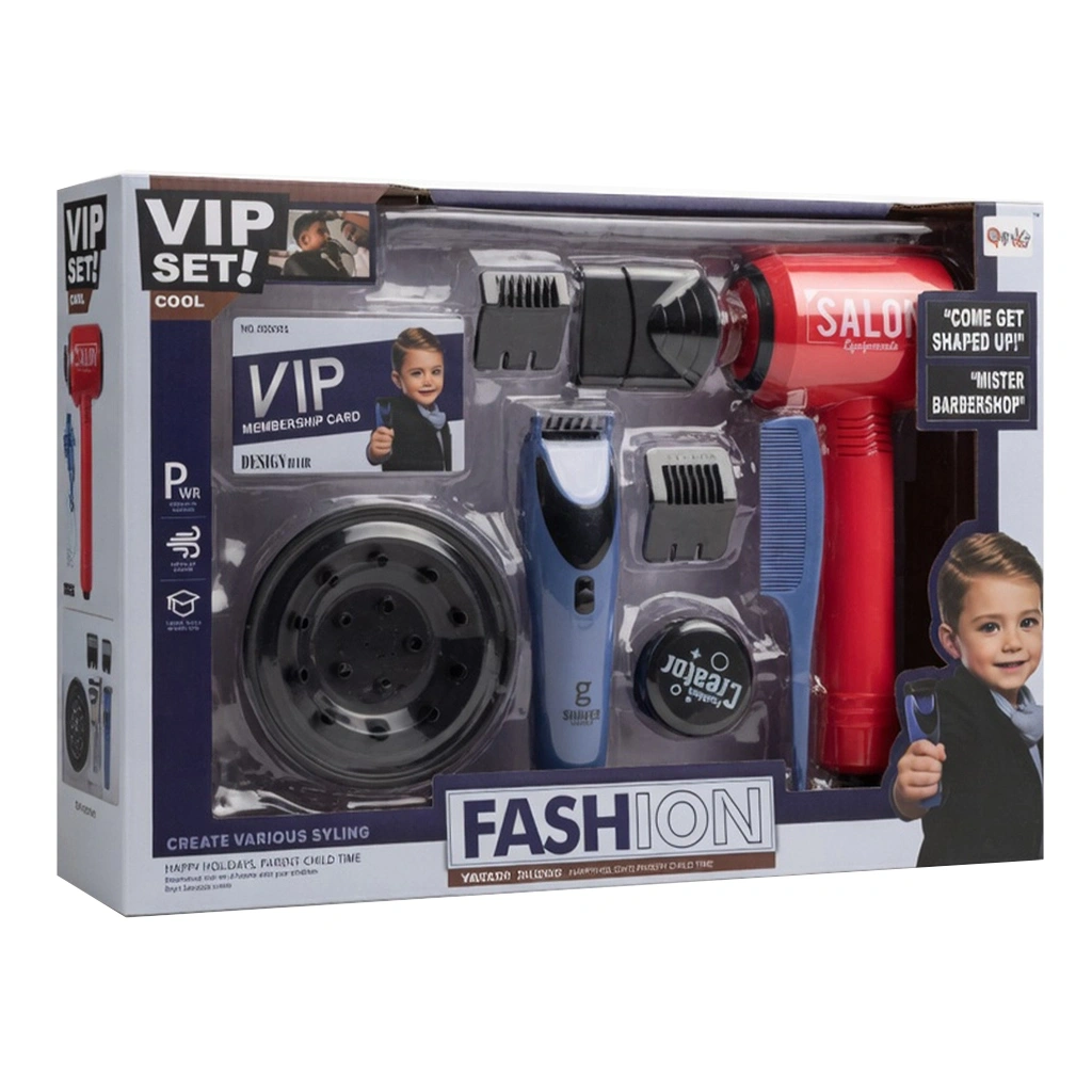 Küçük beyler için profesyonel dokunuş! Prestij QY042, gerçek bir berber salonunda bulunan temel araç gereçleri çocukların güvenle oynayabileceği bir formda sunar. Pilli tıraş makinesinin çıkardığı gerçekçi sesler ve sete dahil olan diğer aksesuarlar, çocuklara kendilerini gerçek bir kuaför veya stilist gibi hissettirir.
