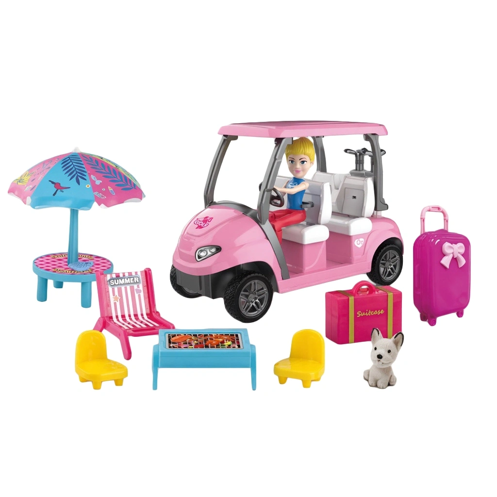 Sahilin tadını çıkarmanın en havalı yolu! Prestij SG-29094, sahil şeridinde gezintiye çıkmak isteyen şık bir bebek ve ona eşlik eden üstü açık bir golf arabasından oluşur. Bebek, güneşli havaya uygun modern kıyafetleriyle dikkat çekerken, golf arabası ise tekerlek mekanizması ve estetik tasarımıyla oyunun gerçekçiliğini artırır.