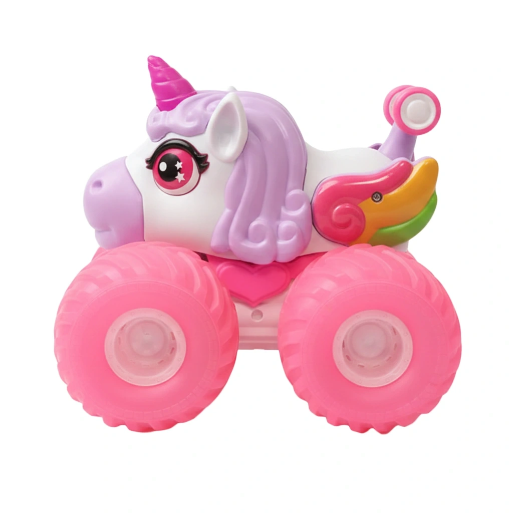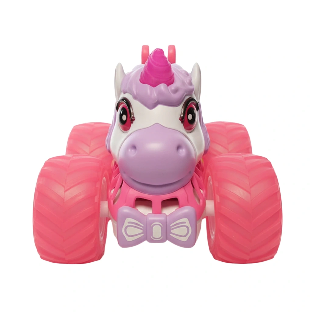 Fantastik bir macera seni bekliyor! Unicorn Stunt Car, masalsı unicorn tasarımını, güçlü bir uzaktan kumandalı (RC) canavar kamyonun heyecanıyla birleştiriyor. Pembe ve mor renklerin hakim olduğu bu sevimli araç, sadece görünüşüyle değil, aynı zamanda hareket yetenekleriyle de dikkat çekiyor. Büyük, dayanıklı tekerlekleri ve kolay kontrol mekanizması sayesinde çocuklar, bu aracı hem içeride hem de dışarıda rahatlıkla kullanabilir.