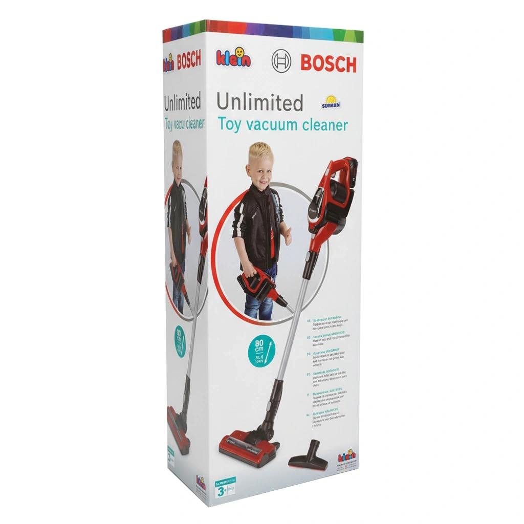 Orijinal Bosch şarjlı dikey süpürgeden esinlenerek yapılmış bu oyuncak süpürge; pratik kullanımı ve kuvvetli çekim gücüyle çocuklara oyun oynarken gerçek bir temizlik deneyimi yaşatacak.