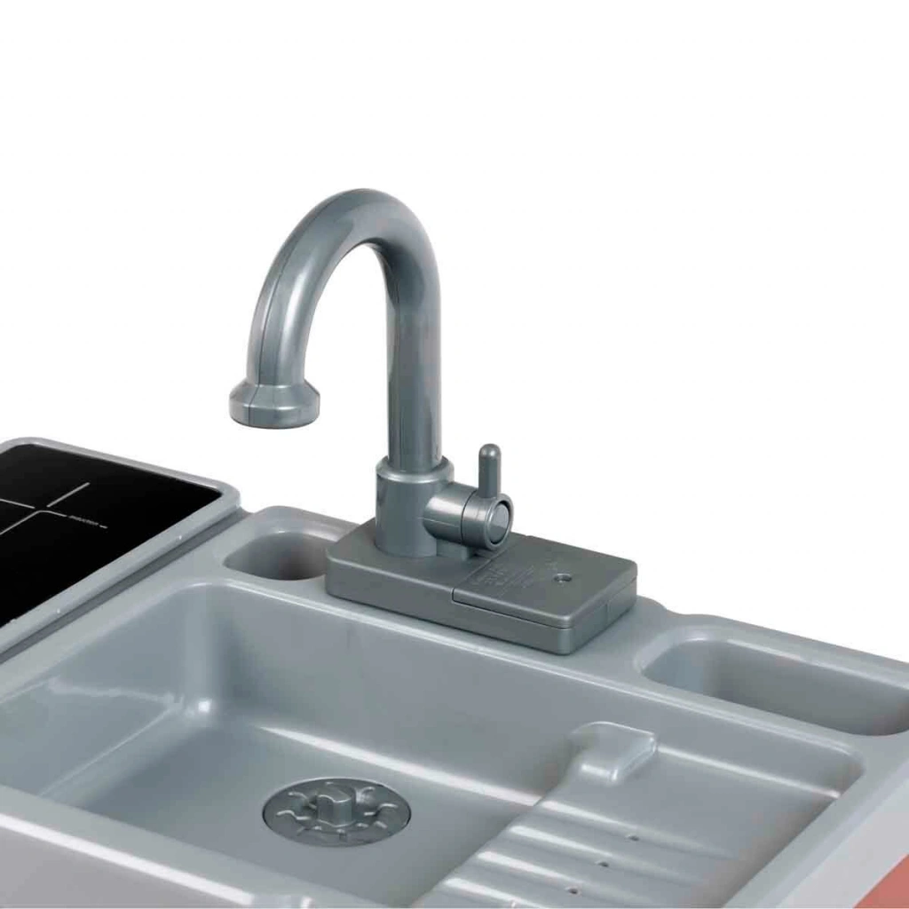 Yemekleri afiyetle yedikten sonra sıra bulaşıklara mı geldi? Kirli bulaşıklar çok mu birikti? Hiç sorun değil, halletmek çok eğlenceli! Lavaboya su ekleyin ve bekleyin! İşte sihir burada başlıyor. Musluktaki tuşa bastığınızda elektronik su fonksiyonu etkinleşiyor ve su akıyor. Bulaşıkları yıkamak artık hem gerçekçi hem de çok güzel bir deneyim oluyor. Bu oyun seti ile mutfakta eğlence hiç bitmiyor, minik eller büyük maceralar yaratıyor!