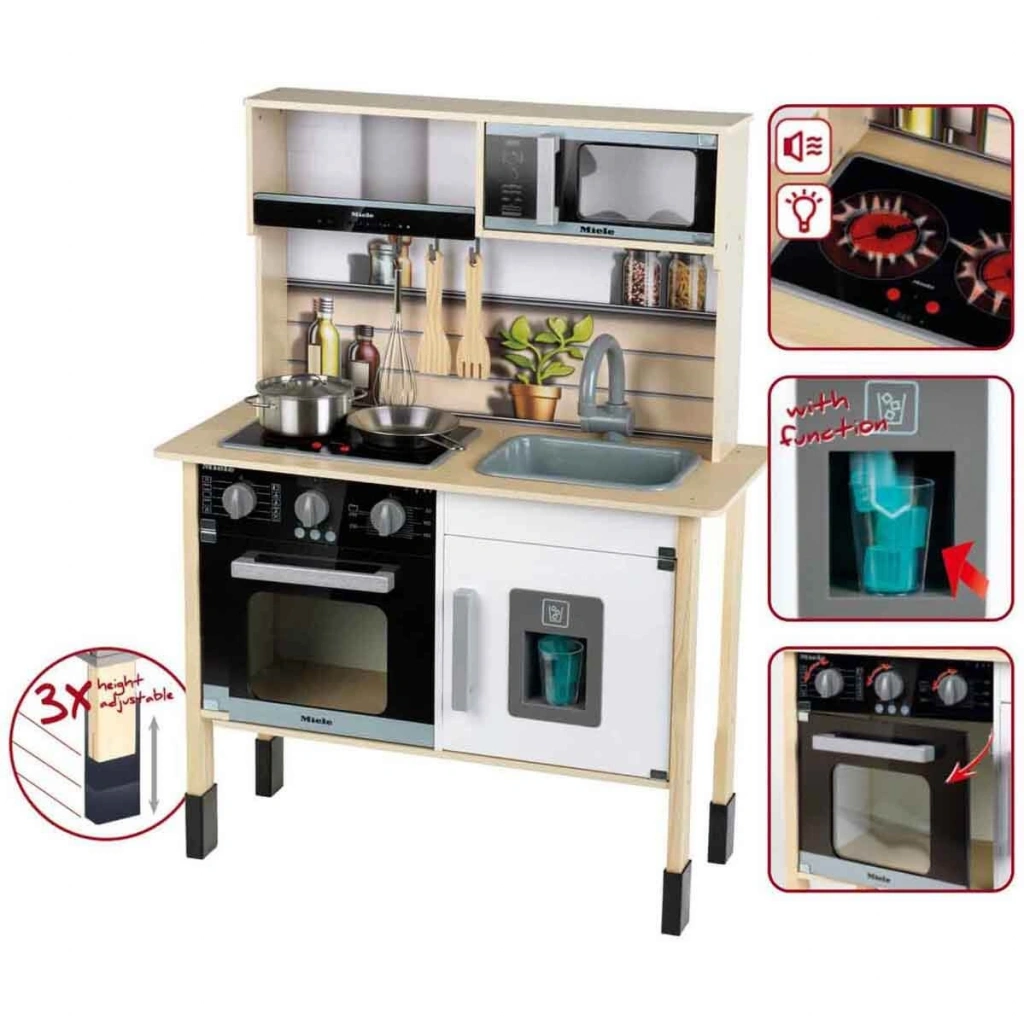 Sesli ve Işıklı Miele Aksesuarlı Ahşap Mutfak Seti’nin en havalı özelliklerinden biri de tezgâhın yüksekliğini ayarlayabiliyor olmamdır. Ben büyüdükçe mutfağım da benimle birlikte büyüyor. Bu da onu sadece bir oyuncak değil, benim gerçek mutfağım yapıyor. Kurabiyeler, çorbalar, etler… Hepsi bu mutfaktan çıkıyor. Her gün başka bir tarif, başka bir macera! Bazen en yakın arkadaşlarım misafir oluyor, bazen de ailem… Ve ben burada her gün, hayal gücümün en tatlı tariflerini pişiriyorum!