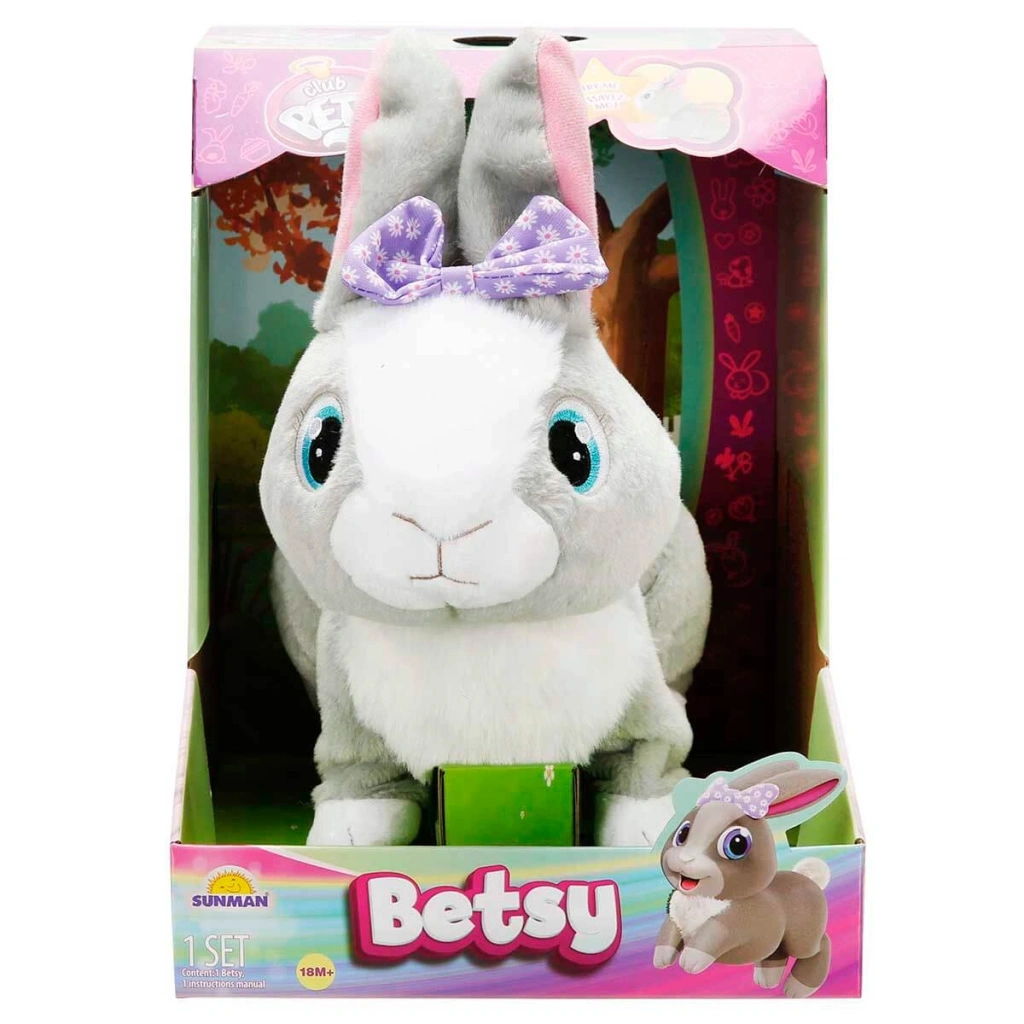 Betsy ile tanışın! Birlikte oyunlar oynadığınızda çok mutlu olan sevimli tavşanınız ile… Sevimliliği gerçek bir tavşandan ilham alınarak tasarlandı ve şimdi minik çocukların en sevdiği arkadaşı olmak için geliyor. Onun bir peluş olduğuna bakma, tepkilerinin gerçek bir tavşandan farkı yok!