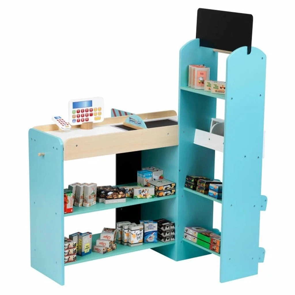 Kutu içerisinde; süpermarket seti, kara tahta, pos cihazı, kasa, broşür standı, tabela, müşteri ayırma çubuğu, çeşitli market ürünleri, 5