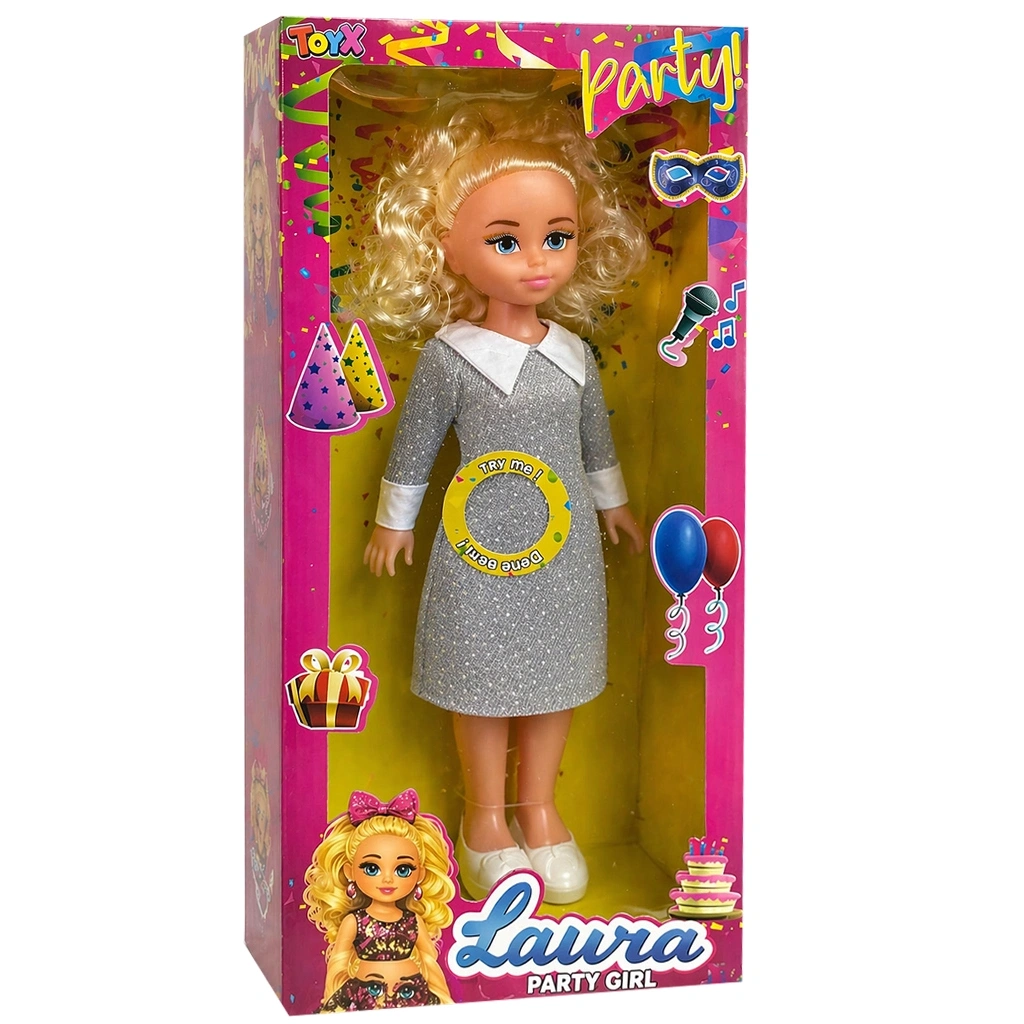 Her gün bir kutlama için yeni bir sebep! TOYX083 Laura, en özel davetlere hazır şık elbisesi ve zarafetiyle çocukların moda dünyasına adım atmasını sağlıyor. Işıltılı detayları ve modern saç tasarımıyla dikkat çeken bu bebek, hem evcilik oyunlarının başrolü hem de çocukların stil danışmanı olacak. En sevilen arkadaşların toplandığı hayali partilerde, Laura her zaman en dikkat çekici figür!