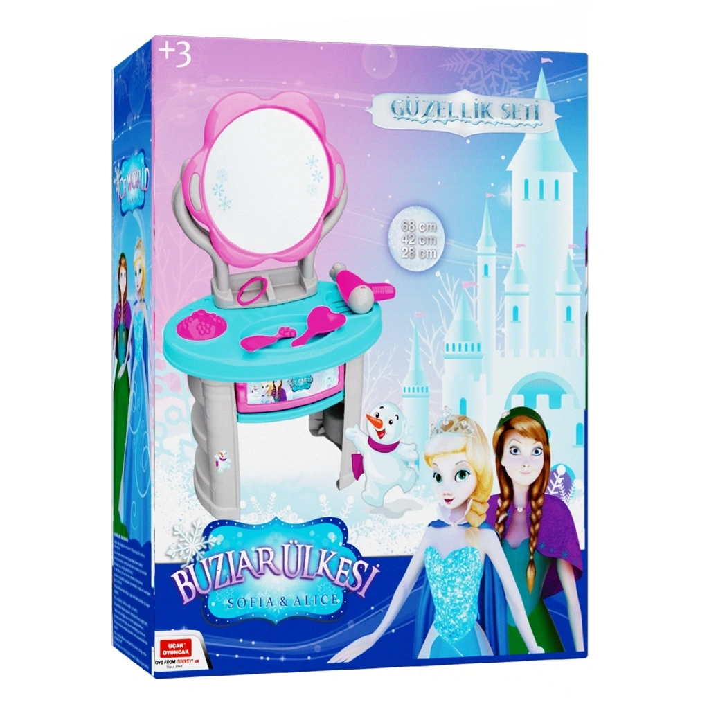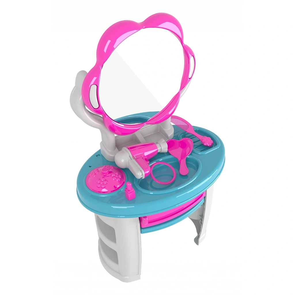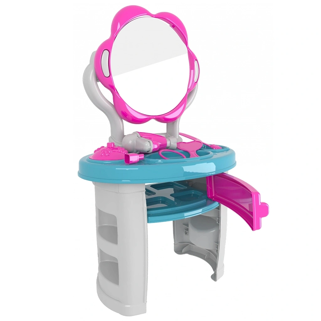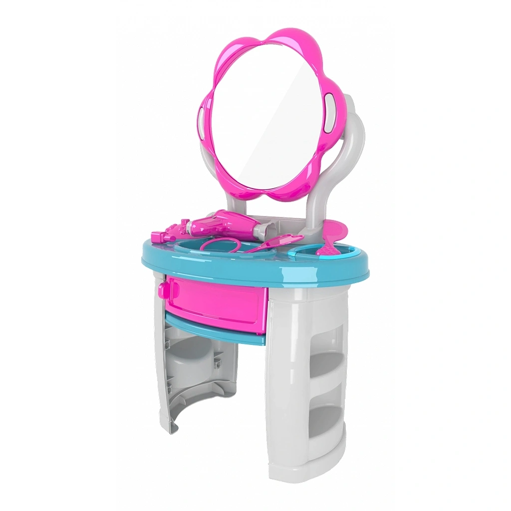 Çocukların ayakta oynayabileceği dilediği zaman ayakları söküp masaüstü koyup da oynayabileceği el becerilerini geliştirmesine yardımcı malzemeleri ile ayaklı Aynalı Güzellik Seti ve Güzellik aksesuarları.