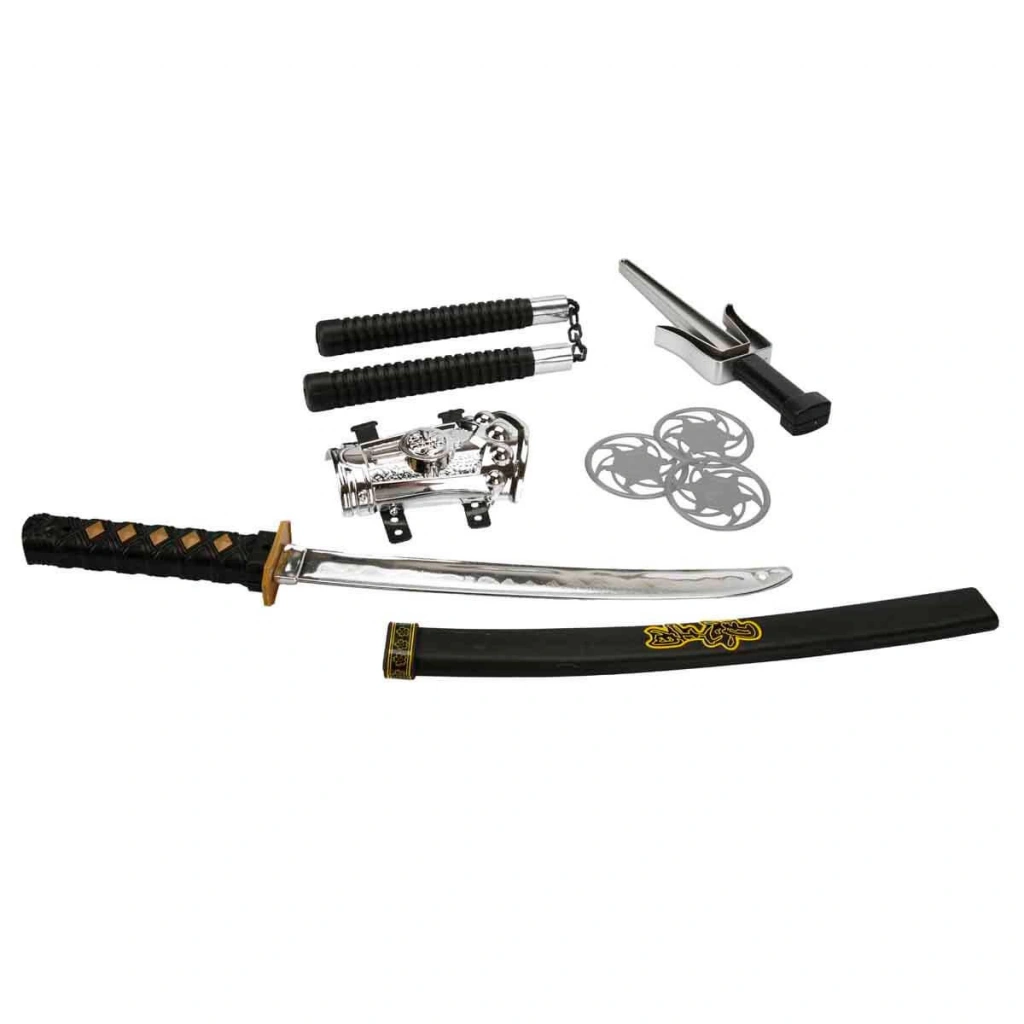 Set içerisinde kötüleri etkisiz hale getirebileceğiniz; 1 kılıç, 1 kılıç kabı, 1 nançaku, 3 ninja yıldızı, koruyucu bileklik, 1 ninja bıçağı yer almaktadır.